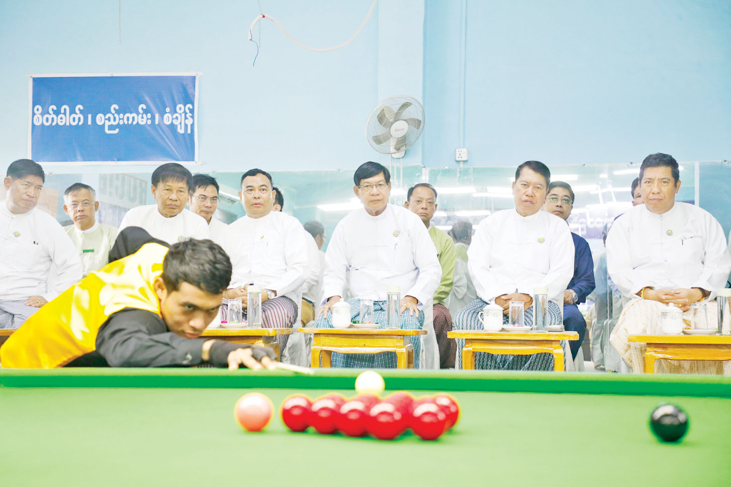 ထို့နောက် ဒုတိယဝန်ကြီးနှင့်အဖွဲ့သည် ဝေဇယန္တာလမ်းရှိ အမျိုးသားအားကစားပြိုင်ပွဲရုံ(၁) သုဝဏ္ဏ၌ မြန်မာနိုင်ငံဘိလိယက်နှင့် စနူကာအဖွဲ့ချုပ် လေ့ကျင့်ရေးခန်းမသို့ ရောက်ရှိပြီး စခန်းဝင်လေ့ကျင့်နေသည့် ပဏာမလက်ရွေးစင် ဘိလိယက်နှင့်စနူကာ အားကစားသမားများ၏ တစ်နေ့တာ လေ့ကျင့်သည့် လေ့ကျင့်ချိန်အရေအတွက်၊ လေ့ကျင့်မှုပုံစံ၊ လေ့ကျင့်သည့် စံချိန်၊ စံနှုန်းရရှိသည့် အနေအထားတို့ကို ကြည့်ရှုစစ်ဆေးပြီး လိုအပ်သည်များ မှာကြားခဲ့ကြောင်း သိရသည်။