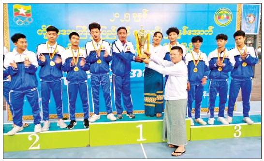ပြိုင်ပွဲများအပြီးတွင် ဆုချီးမြှင့်ပွဲအခမ်းအနားကို ဆက်လက်ကျင်းပရာ အမျိုးသားနှစ်ယောက်တွဲ အဖွဲ့လိုက်ပြိုင်ပွဲတွင် ပထမ စစ်ကိုင်းတိုင်းဒေသကြီးအသင်း၊ ဒုတိယ ဧရာဝတီတိုင်းဒေသကြီးအသင်း၊ တတိယ မန္တလေးတိုင်းဒေသကြီးအသင်း၊ သုံးယောက်တွဲ အဖွဲ့လိုက်ပြိုင်ပွဲတွင် ပထမ စစ်ကိုင်းဒေသကြီးအသင်း၊ ဒုတိယ ရန်ကုန်တိုင်းဒေသကြီးအသင်း၊ တတိယ မန္တလေးတိုင်းဒေသကြီးအသင်း၊ လေးယောက်တွဲ အဖွဲ့လိုက်ပြိုင်ပွဲတွင် ပထမ ရန်ကုန်တိုင်းဒေသကြီးအသင်း၊ ဒုတိယ မန္တလေးတိုင်းဒေသကြီးအသင်း၊ တတိယ ဧရာဝတီတိုင်းဒေသကြီးအသင်း၊ အမျိုးသမီး နှစ်ယောက်တွဲ အဖွဲ့လိုက်ပြိုင်ပွဲတွင် ပထမ မွန်ပြည်နယ်အသင်း၊ ဒုတိယ ဧရာဝတီတိုင်းဒေသကြီး အသင်း၊ တတိယ မကွေးတိုင်းဒေသကြီးအသင်း၊ သုံးယောက်တွဲ အဖွဲ့လိုက်ပြိုင်ပွဲတွင် ပထမ ရန်ကုန်တိုင်းဒေသကြီးအသင်း၊ ဒုတိယ ဧရာဝတီတိုင်းဒေသကြီးအသင်း၊ တတိယ မကွေးတိုင်းဒေသကြီးအသင်း၊ လေးယောက်တွဲ အဖွဲ့လိုက်ပြိုင်ပွဲတွင် ပထမ မွန်ပြည်နယ်အသင်း၊ ဒုတိယ ရန်ကုန်တိုင်းဒေသကြီးအသင်း၊ တတိယ ဧရာဝတီတိုင်းဒေသကြီးအသင်း၊ အမျိုးသားတံခွန်စိုက် ဆုဖလားရရှိခဲ့သည့် စစ်ကိုင်းတိုင်းဒေသကြီးအသင်းနှင့် အမျိုးသမီးတံခွန်စိုက် ဆုဖလားရရှိခဲ့သည့် မွန်ပြည်နယ်အသင်းတို့အား တာဝန်ရှိသူများက ဆုများပေးအပ်ချီးမြှင့်ကြသည်။