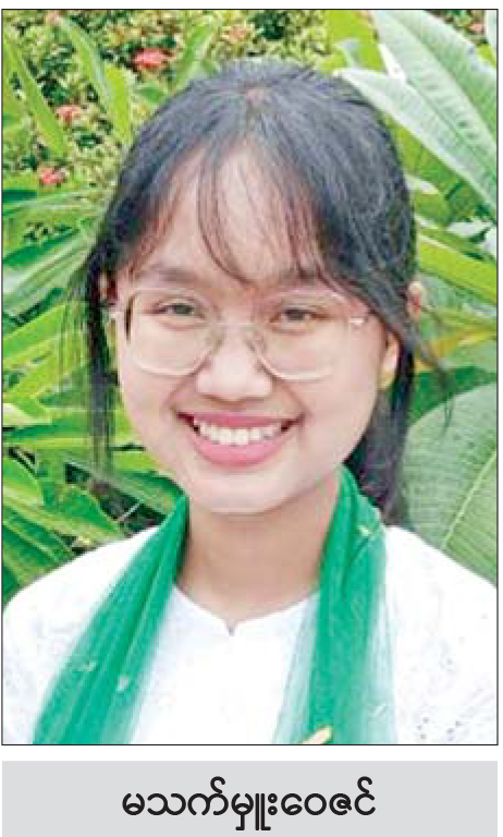 သမီးကတော့ အမှတ်ပေါင်း ၅၂၀ ရရှိခဲ့ပါတယ်။ အခုလို ဝိပ္ပံတွဲ မှာ အမှတ်အများဆုံးနဲ့ အောင်မြင်မှု ရရှိတဲ့အတွက် အလွန်ကို ဝမ်းသာပျော်ရွှင်မိပါတယ်။ သမီးငယ်ငယ်ကတည်းက စာကိုတစိုက်မတ်မတ် ကြိုးစားခဲ့ပါတယ်။ သူငယ်တန်းကနေစပြီး ဆုတွေလည်းရရှိခဲ့ပါတယ်။ မိဘတွေကလည်း ပံ့ပိုးပေးကြပါတယ်။ သမီး အနေနဲ့ စီးပွားရေးကိုဝါသနာပါတဲ့အတွက် ဝိပ္ပံတွဲကိုယူခဲ့တာ ဖြစ်ပါတယ်။ နောက်ပိုင်းကျရင်လည်း စီးပွားရေးကို ထဲထဲဝင်ဝင်ဆောင် ရွက်သွားမှာဖြစ်ပါတယ်။ ဒါကြောင့် စီးပွားရေး တက္ကသိုလ်တက်ရောက်မယ်လို့ စိတ်ကူးထားပါတယ်။