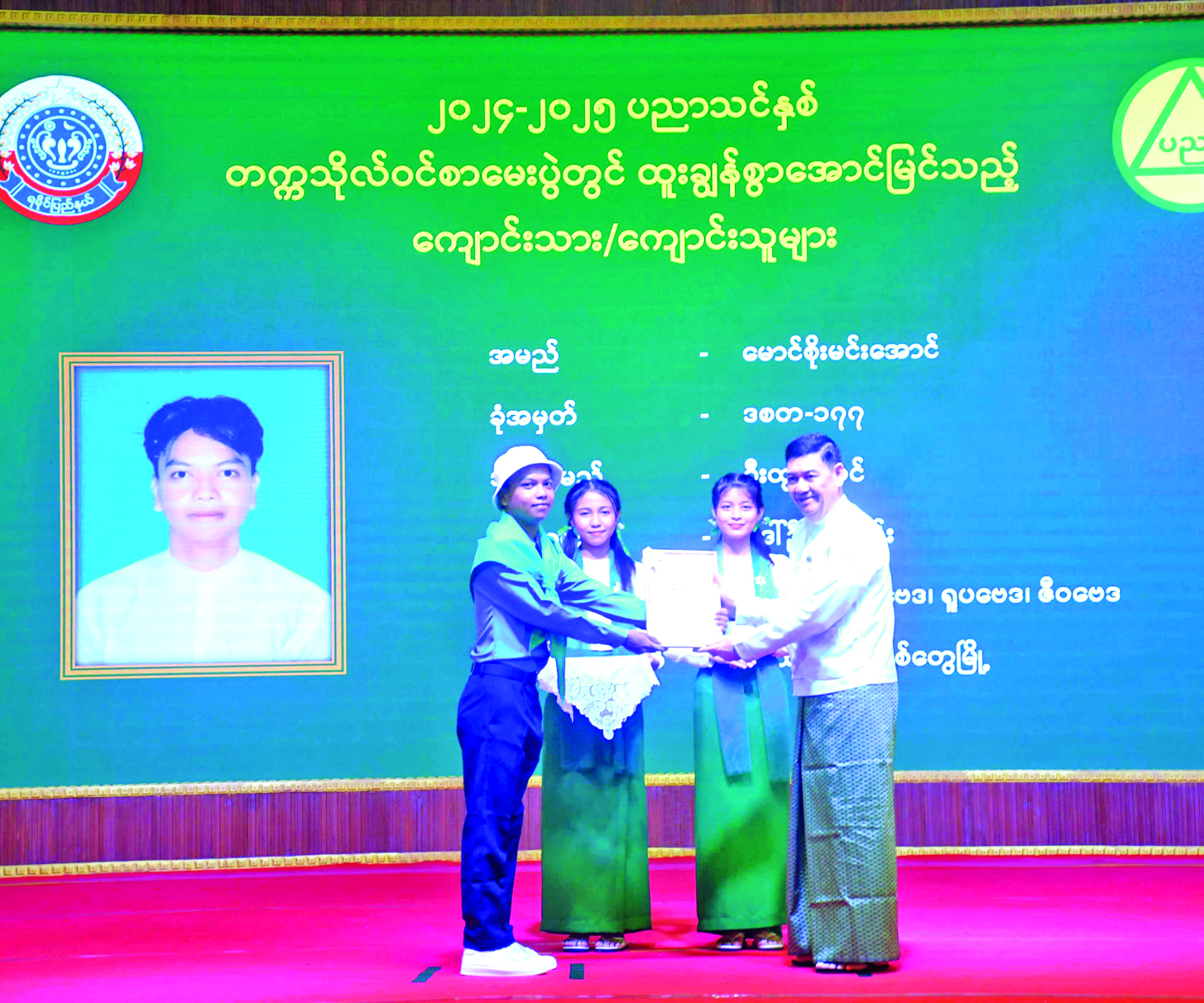 ၂၀၂၅ ခုနှစ် တက္ကသိုလ်ဝင် စာမေးပွဲတွင် ထူးချွန်စွာအောင်မြင် ခဲ့ကြသူများအား ပညာရည်ချွန်ဆု ချီးမြှင့်ပွဲကို ယနေ့နံနက်ပိုင်းက စစ်တွေမြို့ ဦးဥတ္တမခန်းမ၌ ကျင်းပရာ ရခိုင်ပြည်နယ် ဝန်ကြီးချုပ် ဦးထိန်လင်းနှင့်ဇနီး၊ ပြည်နယ်တရားလွှတ်တော်တရားသူကြီးချုပ်၊ ပြည်နယ်ဝန်ကြီးများ၊ ဆရာ ဆရာမများ၊ ကျောင်းသား ကျောင်းသူများနှင့် မိဘများ၊ ဖိတ်ကြားထားသူများ တက်ရောက် ကြသည်။