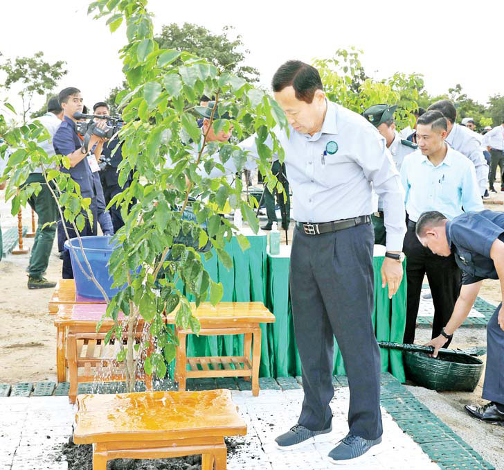 ပြည်ထောင်စုနယ်မြေ၊ နေပြည်တော်၊ ၂၀၂၅ ခုနှစ်၊ တတိယအကြိမ် မိုးရာသီသစ်ပင်စိုက်ပျိုးပွဲ အခမ်းအနားကို ယနေ့နံနက်ပိုင်းတွင် ပြည်ထောင်စုနယ်မြေ နေပြည်တော်၊ ဒက္ခိဏသီရိမြို့နယ်၊ မာရဝိဇယဗုဒ္ဓရုပ်ပွားတော်မြတ်ကြီး ပရိဝုဏ်တော်အနီး၌ ကျင်းပရာ ပြည်ထောင်စုသမ္မတ မြန်မာနိုင်ငံတော် ယာယီသမ္မတ နိုင်ငံတော်လုံခြုံရေးနှင့်အေးချမ်းသာယာရေးကော်မရှင်ဥက္ကဋ္ဌ ဗိုလ်ချုပ်မှူးကြီး မင်းအောင်လှိုင် တက်ရောက်၍ ခရေပျိုးပင်ကို ဦးဆောင်စိုက်ပျိုးပေးသည်။