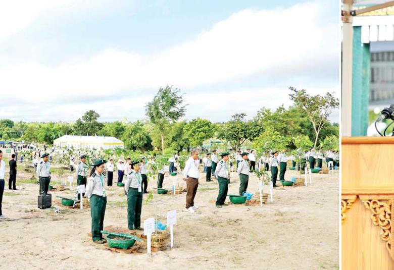 နိုင်ငံတော်သာယာဖို့ သဘာဝပတ်ဝန်းကျင် ထိန်းကြစို့ ဆိုသည့် နိုင်ငံတော်၏ မူဝါဒနှင့်အညီ နေပြည်တော်ကောင်စီနယ်မြေအပါအဝင် နိုင်ငံအဝန်း မြို့ပြများနှင့် ရပ်ရွာ၊ ကျေးလက်ဒေသ အသီးသီးတွင် သစ်ပင်သစ်တောများ၊ စိမ်းလန်းစိုပြည်သည့် သစ်တောမြေယာရှုခင်း (Landscape) များ၊ အစိမ်းရောင်ဧရိယာ (Green Space) များကို စဉ်ဆက်မပြတ် တိုးမြှင့်စိုက်ပျိုးတည်ထောင်ရေး အလေးထားဆောင်ရွက်ပေးကြရန်၊ လူတိုင်းလူတိုင်း၊ အိမ်ထောင်စုတိုင်း၊ ကျေးရွာ၊ ရပ်ကွက်တိုင်း သစ်ပင်စိုက်ပျိုးကြရေး စည်းရုံးဆောင်ရွက်ကြရန်၊ ယခုကဲ့သို့ အချိန်၊ လူအင်အားနှင့် ငွေကုန်ကြေးကျခံပြီး စိုက်ပျိုးထားသည့်အပင်များကို တစ်ပင်စိုက်တစ်ပင်ရှင်ဖြင့် အားလုံး ရှင်သန်အောင် ဝိုင်းဝန်းထိန်းသိမ်းပြုစုသွားကြရန်၊ နိုင်ငံအဝန်း သစ်ပင်သစ်တောများ စနစ်တကျ စိုက်ပျိုးထိန်းသိမ်းစီမံအုပ်ချုပ်ရေးကို အမျိုးသားရေးတာဝန်တစ်ရပ်အနေဖြင့် ပြည်သူအားလုံး ပူးပေါင်းပါဝင်ဆောင်ရွက်သွားကြရန် တိုက်တွန်းမှာကြားလိုကြောင်းဖြင့် ပြောကြားသည်။