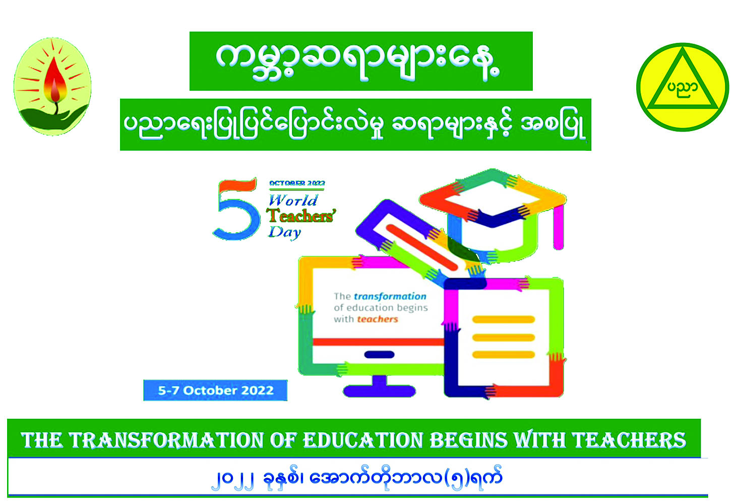 မြန်မာနိုင်ငံရဲ့ ဘယ်အရပ်ဒေသမှာရှိနေတဲ့ ကျောင်း၊ တက္ကသိုလ်က ဆရာဟာ မိမိရောက်နေတဲ့ဒေသရဲ့ သင်ကြားသင်ယူမှု ဝန်းကျင်ကို ကောင်းမွန်အောင်၊ လူများစုသင်ယူလေ့လာနိုင်တဲ့ ပတ်ဝန်းကျင် ကောင်းဖြစ်တဲ့အထိ မျှော်မှန်းပြီးဆောင်ရွက်ဖို့၊ အတွေးအခေါ် အယူ အဆတွေ ပြောင်းလဲကောင်းပြောင်းလဲပါမယ်။ နည်းစနစ်တွေ ပြောင်းလဲကောင်းပြောင်းလဲမယ်။ ကျွမ်းကျင်မှုအတတ်ပညာတွေ မြှင့်တင်ရတာရှိကောင်းရှိမယ်။ ဒီခေတ်ပညာရေးဟာ တစ်ကမ္ဘာလုံး ဝေဖန်သုံးသပ်နိုင်ခြင်း၊ တီထွင်ကြံဆဖန်တီးပေးနိုင်ခြင်း လေ့လာစရာ နယ်ပယ်သစ်တွေဘက်ကို ရွေ့လျားနေတဲ့ ပညာရေးစနစ်ကြီးဖြစ် ပါတယ်။ အဲဒီလုပ်ငန်းစဉ်တွေရဲ့ ဗဟိုချက်မဟာ ဆရာပါပဲ။ ဒီတော့ ဆရာဟာ အလွန်အားထုတ်ပေးရမယ့် နေရာမှာ ရောက်ရှိနေပါတယ်။
