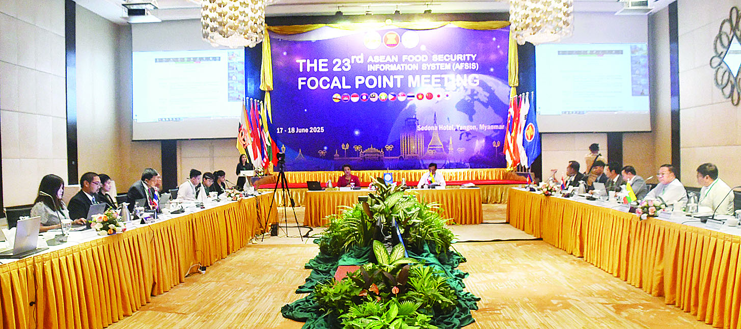 (၂၃)ကြိမ်မြောက် အာဆီယံစားရေ ရိက္ခာဖူလုံရေးဆိုင်ရာ သတင်းအချက်အလက်စနစ်၏ (THE 23 ASEAN FOOD SECURITY INFORMATION SYSTEM (AFSIS) Focal Point Meeting) ကို မြန်မာနိုင်ငံက အိမ်ရှင်အဖြစ် ယနေ့နံနက်ပိုင်းက ရန်ကုန်မြို့ ဆီဒိုးနားဟိုတယ်၌ Hybrid စနစ်ဖြင့် ကျင်းပသည်။