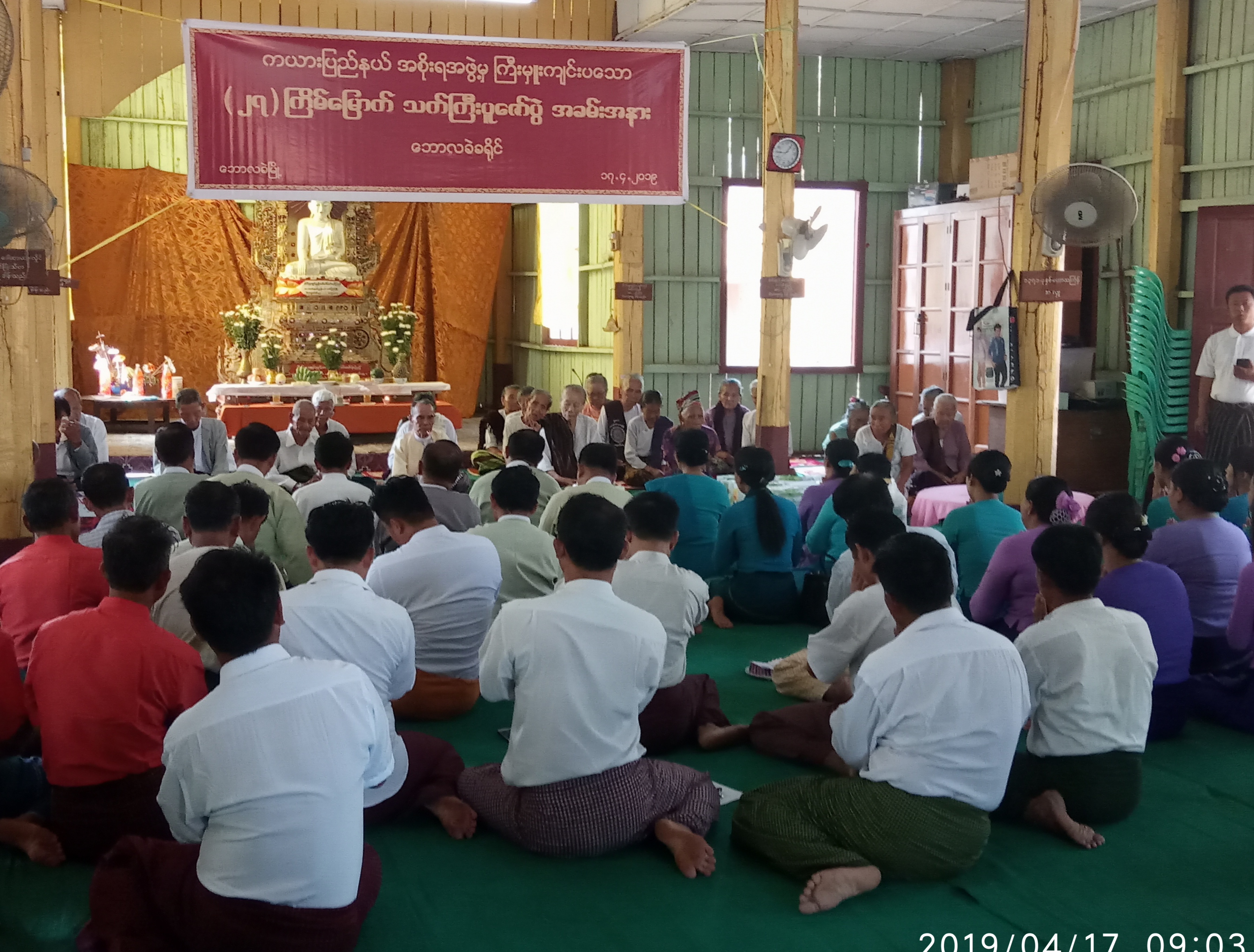 ဆက်လက်ပြီး ပရိတ်တရားတော်နာရေးအတွက် ရှမ်းပိုင်းရပ်ကွက်နှင့် ကယားပိုင်ရပ်ကွက်တို့ကို ခရိုင်အုပ်ချုပ်ရေးမှူးက အလှူငွေများ ပေးအပ်လှူဒါန်းရာ ရပ်ကွက်အုပ်ချုပ်ရေးမှူးများက လက်ခံရယူခဲ့ပြီး ဘိုးဘွားများအား စားသောက်ဖွယ်ရာ များဖြင့် တည်ခင်းဧည့်ခံ ကျွေးမွေးခဲ့သည်။