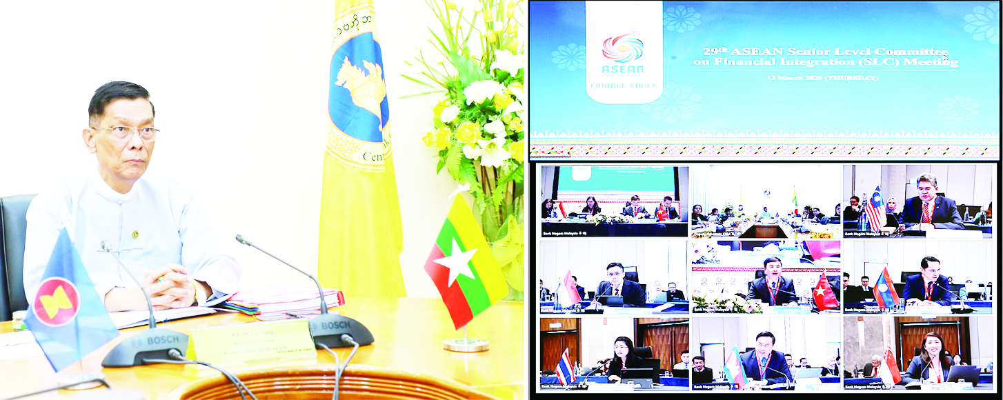 (၂၉)ကြိမ်မြောက် အာဆီယံငွေရေးကြေးရေး ပေါင်းစည်းရေးဆိုင်ရာ အဆင့်မြင့်ကော်မတီ အစည်း အဝေး (29th ASEAN Senior Level Committee Meeting for Financial Integration) ကို ယမန်နေ့ တွင် မလေးရှားနိုင်ငံ၌ ကျင်းပရာ မြန်မာနိုင်ငံတော်ဗဟိုဘဏ် ဒုတိယဥက္ကဋ္ဌ ဒေါက်တာလင်းအောင်နှင့် တာဝန်ရှိသူများက Virtual စနစ်ဖြင့် တက်ရောက် ကြသည်။