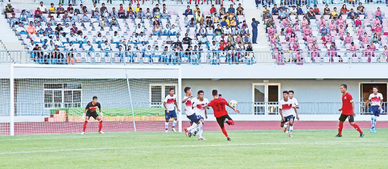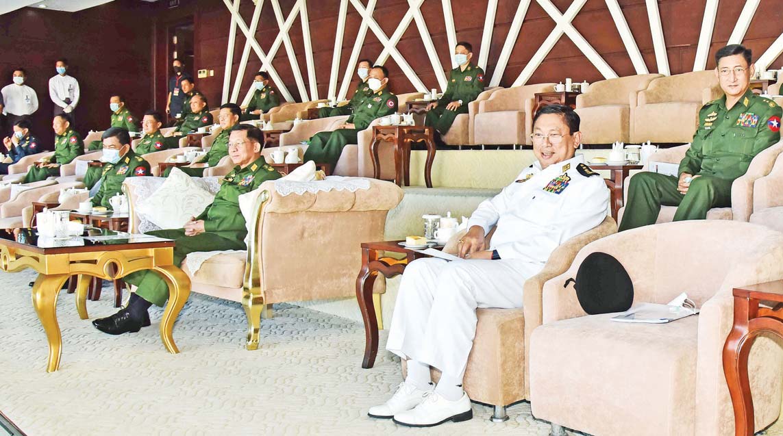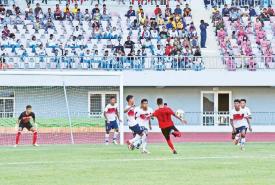 ၂ဝ၂၂ ခုနှစ်၊ တပ်မတော် (ကြည်း၊ ရေ၊ လေ) အားကစားပြိုင်ပွဲ၊ တပ်မတော်ကာကွယ်ရေးဦးစီးချုပ်ဖလား(ခ)အဆင့် ဘောလုံးပြိုင်ပွဲဗိုလ်လုပွဲ ပွဲစဉ်အဖြစ် အရှေ့မြောက်တိုင်းစစ်ဌာနချုပ် ကိုယ်စားပြုဘောလုံးအသင်းနှင့် အရှေ့တောင်တိုင်းစစ်ဌာနချူပ်ကိုယ်စားပြု ဘောလုံးအသင်းတို့သည် ယနေ့ညနေပိုင်းတွင် ဇေယျာသီရိတပ်မတော်အားကစားကွင်း၌ ယှဉ်ပြိုင်ကစားကြရာ နိုင်ငံတော်စီမံအုပ်ချုပ်ရေးကောင်စီဥက္ကဋ္ဌ တပ်မတော်ကာကွယ်ရေးဦးစီးချုပ် ဗိုလ်ချုပ်မှူးကြီးမင်းအောင်လှိုင် တက်ရောက်ကြည့်ရှုအားပေးသည်။