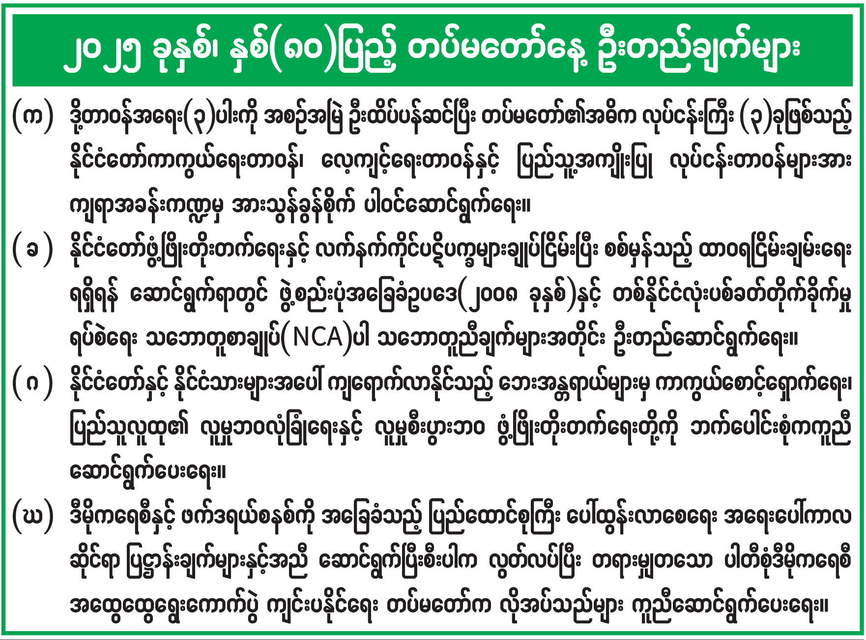 ၂ဝ၂၅ ခုနှစ်၊ နှစ်(၈၀)ပြည့် တပ်မတော်နေ့ ဦးတည်ချက်များ