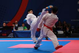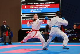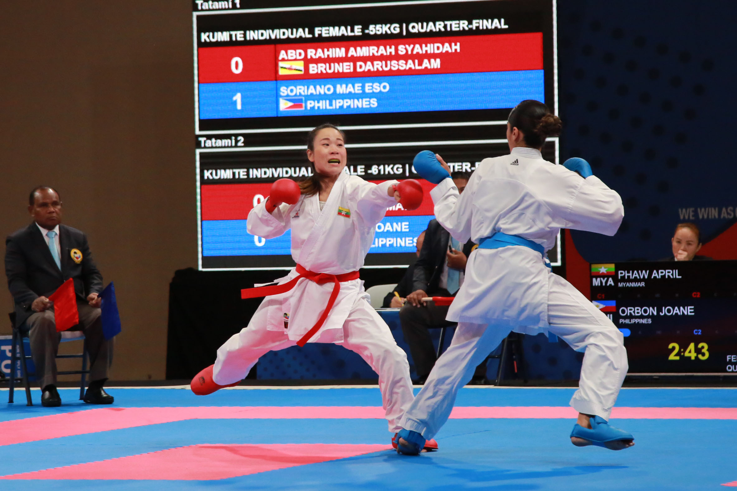 ဆက်လက်၍ World Trade Center Halls A, B & C ၌ ကျင်းပပြုလုပ်သည့် ကရာတေးအားကစားပြိုင်ပွဲ (၅၅)ကီလိုတန်း ပွဲစဉ်တွင် မြန်မာမှ မိုးပြာသည် မလေးရှားကိုလည်းကောင်း၊ (၆၁)ကီလိုတန်းပွဲစဉ်တွင် မြန်မာမှ အေပရယ်ဖောသည် အိမ်ရှင်ဖိလစ်ပိုင်ကို လည်းကောင်း၊ (၆၀)ကီလို တန်းပွဲစဉ်တွင် မြန်မာမှ မြင့်မောင်မောင်ဟိန်းသည် ဗီယက်နမ်ကို လည်းကောင်း ရှုံးနိမ့်ခဲ့သည်။