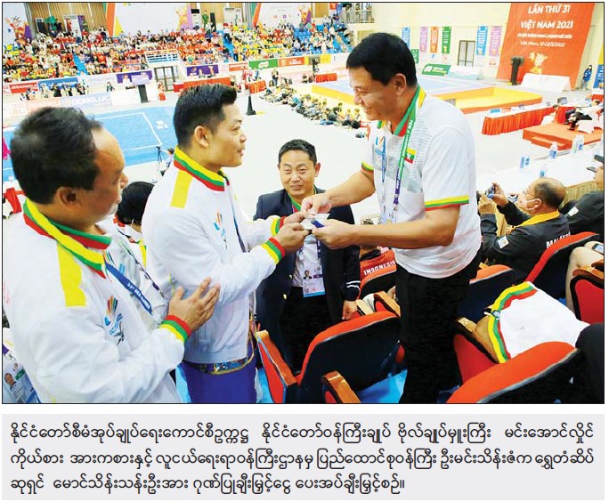 ဗီယက်နမ်နိုင်ငံက အိမ်ရှင်အဖြစ် လက်ခံကျင်းပလျက်ရှိသည့် (၃၁) ကြိမ်မြောက် အရှေ့တောင်အာရှ အားကစားပြိုင်ပွဲ ဝူရှူးအားကစားနည်း Nangun (နန်းကွန့်) တုတ်ရှည်ပြိုင်ပွဲ၌ မောင်သိန်းသန်းဦးက ဝင်ရောက်ယှဉ်ပြိုင်ခဲ့ရာ မြန်မာနိုင်ငံအတွက် စတုတ္ထမြောက် ရွှေတံဆိပ်ဆုကို ထိုက်ထိုက်တန်တန် ထပ်မံဆွတ်ခူးရရှိခဲ့သည့်အတွက် နိုင်ငံတော် စီမံအုပ်ချုပ်ရေးကောင်စီ ဥက္ကဋ္ဌ နိုင်ငံတော်ဝန်ကြီးချုပ် ဗိုလ်ချုပ်မှူးကြီး မင်းအောင်လှိုင်ထံမှ ရွှေတံဆိပ် ဆုရှင် မောင်သိန်းသန်းဦးအား ဂုဏ်ပြုချီးမြှင့်ငွေ US $ 3000 ကို အားကစားနှင့် လူငယ်ရေးရာ ဝန်ကြီးဌာန ပြည်ထောင်စု ဝန်ကြီးက ကိုယ်စားပေးအပ် ချီးမြှင့်သည်။