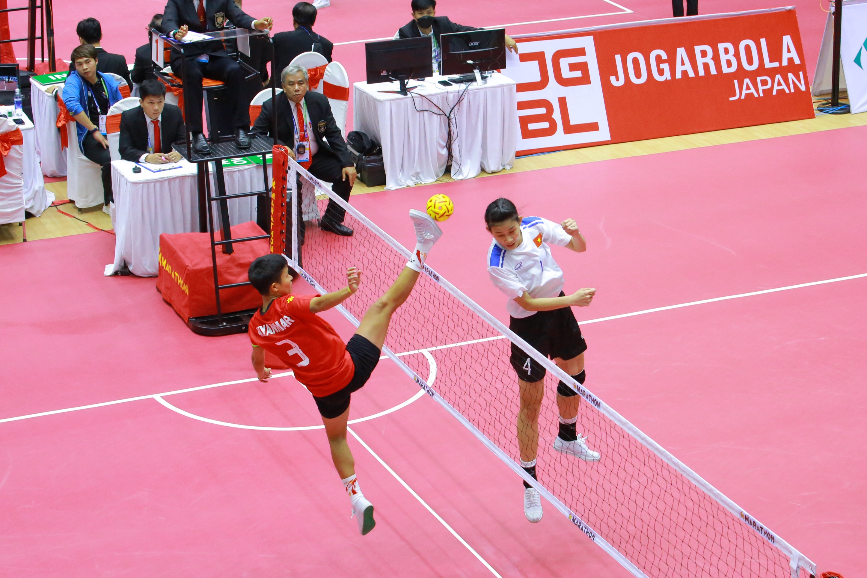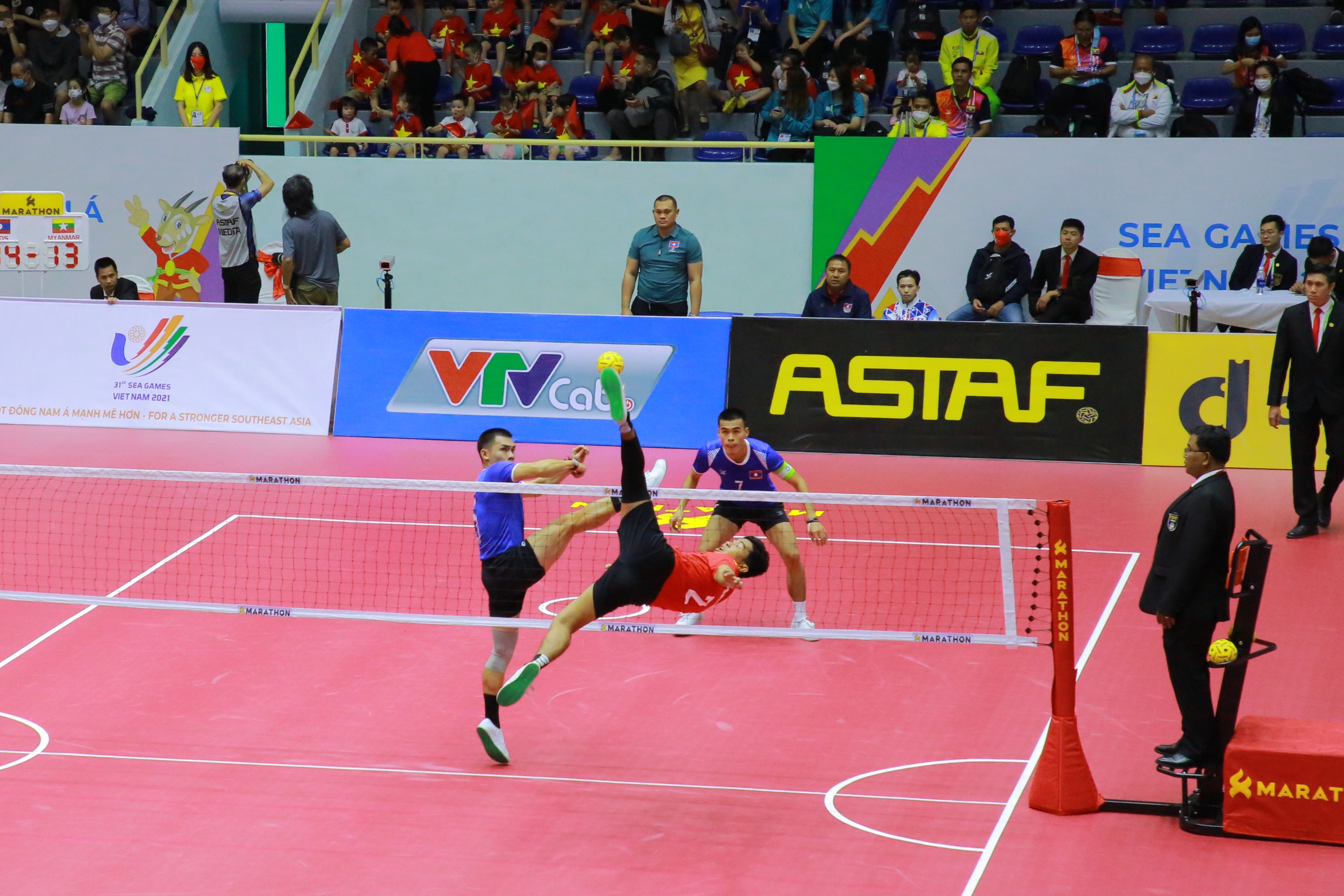 ဗီယက်နမ်နိုင်ငံ၌ အိမ်ရှင်အဖြစ် လက်ခံကျင်းပလျက်ရှိသည့် (၃၁) ကြိမ်မြောက် အရှေ့တောင် အာရှအားကစားပြိုင်ပွဲများကို မြို့အသီးသီးရှိ အားကစားကွင်း/ အားကစားရုံများ၌ ကျင်းပလျက် ရှိရာ ယနေ့မွန်းလွဲပိုင်းတွင် ဗီယက်နမ်နိုင်ငံ ဟနွိုင်းမြို့ရှိ Hoang Mai အားကစားရုံ၌ ပိုက်ကျော်ခြင်းအားကစားနည်းမှ အမျိုးသား/အမျိုးသမီး ဗိုလ်လုပွဲ ပွဲစဉ်များ၌ အမျိုးသမီး (နှစ်ယောက်တွဲ)အသင်းလိုက်(Regu)ပြိုင်ပွဲတွင် အိမ်ရှင်ဗီယက်နမ်အသင်းကို (၂-၁) ဖြင့် အနိုင်ရရှိခဲ့ပြီး မြန်မာနိုင်ငံအတွက် သတ္တမမြောက် ရွှေတံဆိပ်ဆုကို ထိုက်ထိုက် တန်တန် ဆွတ်ခူး ရယူပေးနိုင်ခဲ့ပါကြောင်း၊ အမျိုးသား(နှစ်ယောက်တွဲ) အသင်းလိုက်ပြိုင်ပွဲတွင် ကြေးတံဆိပ်ဆု ကိုလည်းကောင်း၊ ပြေးခုန်ပစ်အားကစားနည်းမှ ၂၀ ကီလိုမီတာ အမျိုးသမီး (လမ်းလျှောက်) ပြိုင်ပွဲ ဖိုင်နယ်ပွဲစဉ်၌ မြန်မာ၊ မလေးရှား၊ ထိုင်းနှင့် ဗီယက်နမ်နိုင်ငံတို့ ယှဉ်ပြိုင် ကြရာတွင် မဇင်မေထက် က ငွေတံဆိပ်ဆု ကိုလည်းကောင်း ဆုများအသီးသီး ထပ်မံ ဆွတ်ခူး ရရှိခဲ့ကြသည်။