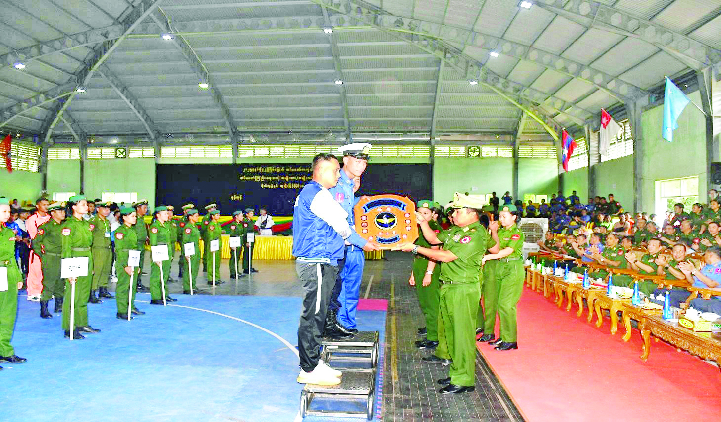 ၂၀၂၅ ခုနှစ် (၃၂) ကြိမ်မြောက် တပ်မတော်ကာကွယ်ရေးဦးစီးချုပ် တံခွန်စိုက်ဒိုင်း တပ်မတော် (ကြည်း၊ ရေ၊ လေ) အမျိုးသား၊ အမျိုးသမီး မြန်မာ့သိုင်းပြိုင်ပွဲ ဗိုလ်လုပွဲနှင့် ဆုချီးမြှင့်ခြင်းကို ယနေ့ မွန်းလွဲပိုင်းတွင် ရန်ကုန်တိုင်းစစ်ဌာနချုပ် အားကစားရုံ (နဝဒေး) ၌ ပြုလုပ်ရာ တိုင်းမှူး ဗိုလ်ချုပ်ပြည့်စုံလင်းနှင့် အရာရှိ၊ စစ်သည်၊ မိသားစုဝင်များ၊ ဒိုင်အဖွဲ့ဝင်များ၊ ပြိုင်ပွဲဝင် အားကစားသမားများ တက်ရောက်ကြသည်။