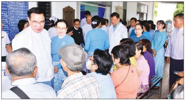 ဦးစွာတိုင်းဒေသကြီး ဝန်ကြီးချုပ်နှင့်ဇနီး၊ အစိုးရအဖွဲ့ဝင်ဝန်ကြီးများနှင့် ၎င်းတို့၏ဇနီးများသည် ပဲခူးမြို့ ခုတင်(၅၀၀)ဆုံ အထွေထွေ ရောဂါကုဆေးရုံကြီးတွင် ကျန်းမာရေးစောင့်ရှောက်မှု လာရောက် ခံယူကြသည့် အငြိမ်းစားနိုင်ငံ ဝန်ထမ်းများအား ကျန်းမာရေး ဝန်ထမ်းများက စမ်းသပ်စစ်ဆေး ကုသပေးနေမှု၊ ဌာနဆိုင်ရာများ၊ မြို့မိမြို့ဖများ၊ လူမှုရေးအသင်း အဖွဲ့များနှင့် ပရဟိတအဖွဲ့အစည်း များမှ ပူးပေါင်းပါဝင် ကူညီဆောင် ရွက်ပေးနေမှုနှင့် ရေသန့်၊ ကော်ဖီနှင့် အာဟာရမုန့်များ အခမဲ့ တိုက်ကျွေးနေမှုများကို လိုက်လံကြည့်ရှုပြီး ကျန်းမာရေး စောင့်ရှောက်မှု လာရောက်ခံယူကြသည့် အငြိမ်းစား နိုင်ငံ့ဝန်ထမ်းများအား ရင်းရင်းနှီးနှီး လိုက်လံနှုတ်ဆက် အားပေးစကား ပြောကြားကာ လစဉ် အငြိမ်းစားနိုင်ငံ့ဝန်ထမ်း များအား စဉ်ဆက်မပြတ် ကျန်းမာ ရေး စောင့်ရှောက်မှုပေးနိုင်ရေးနှင့် ဆေးဝါးလိုအပ်ချက် မရှိစေ ရေး ဖြည့်ဆည်းဆောင်ရွက်ပေးသည်။