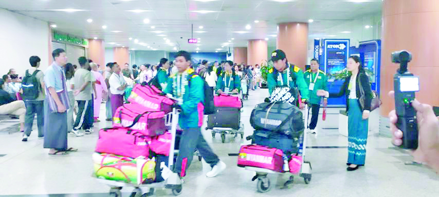 ဒီဇင်ဘာ ၉ ရက်မှ ၂၀ ရက်အထိ ထိုင်းနိုင်ငံ ဗန်ကောက်မြို့၌ ကျင်းပသည့် (၃၃) ကြိမ်မြောက် အရှေ့တောင်အာရှ အားကစားပြိုင်ပွဲတွင် ဝင်ရောက်ယှဉ်ပြိုင်ခဲ့သည့် ကနူး/ကယက် အားကစား အဖွဲ့နှင့် အုပ်ချုပ်မှုအဖွဲ့တို့သည် ယနေ့ ညနေ ၆ နာရီ ၃၅ မိနစ်တွင် အပြည်ပြည်ဆိုင်ရာ မြန်မာ့ လေကြောင်း လိုင်း(MAI) ဖြင့် ရန်ကုန်အပြည်ပြည်ဆိုင်ရာ လေဆိပ်သို့ ပြန်လည်ရောက်ရှိ လာရာ အားကစားနှင့် ကာယပညာဦးစီးဌာနမှ တာဝန်ရှိသူများ၊ ပြိုင်ပွဲဝင် အားကစားသမားများ၏ မိဘဆွေမျိုးများက ဂုဏ်ပြုကြိုဆိုကြသည်။