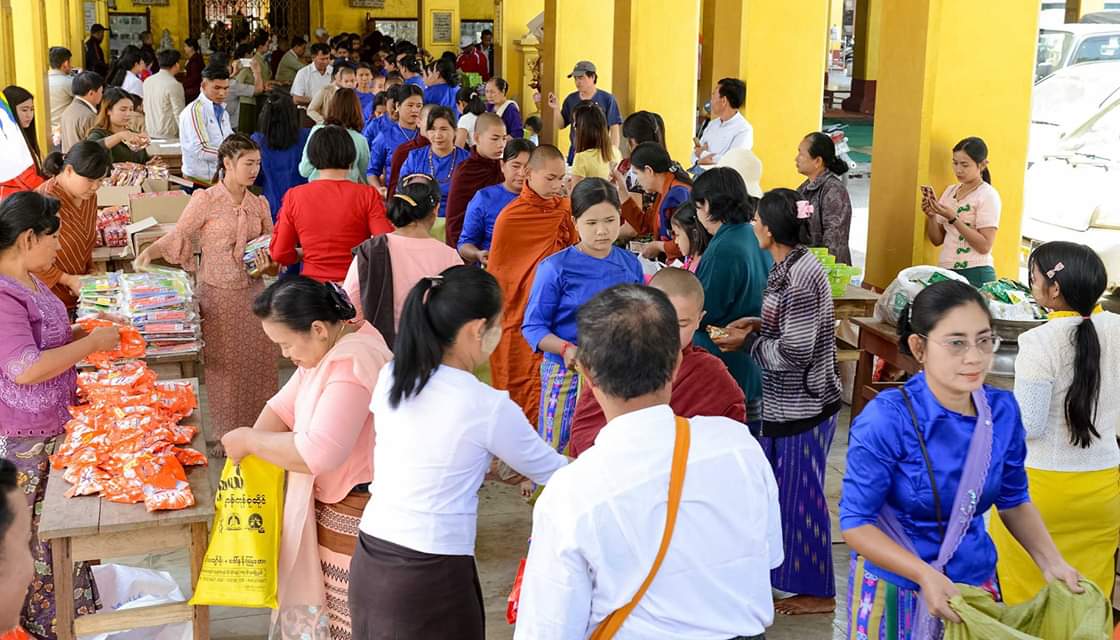 ထို့နောက် ဆရာတော်၊ သံဃာတော်များနှင့် စာအောင်ဆရာတော် အပါး(၄၁၄)ပါးတို့အား ဆွမ်းဆန်စိမ်းလောင်းလှူပွဲကျင်းပခဲ့ရာ မြို့နယ်အုပ်ချုပ်ရေးမှူးနှင့် ဌာနဆိုင်ရာများ၊ မြို့မိမြို့ဖ စေတနာရှင် အလှူရှင်များက ဆန်၊ ဆီ၊ ဆေး၊ ဆား အစရှိသည့် လှူဖွယ်ပစ္စည်းများ လောင်းလှူခဲ့ကြကြောင်း သိရသည်။