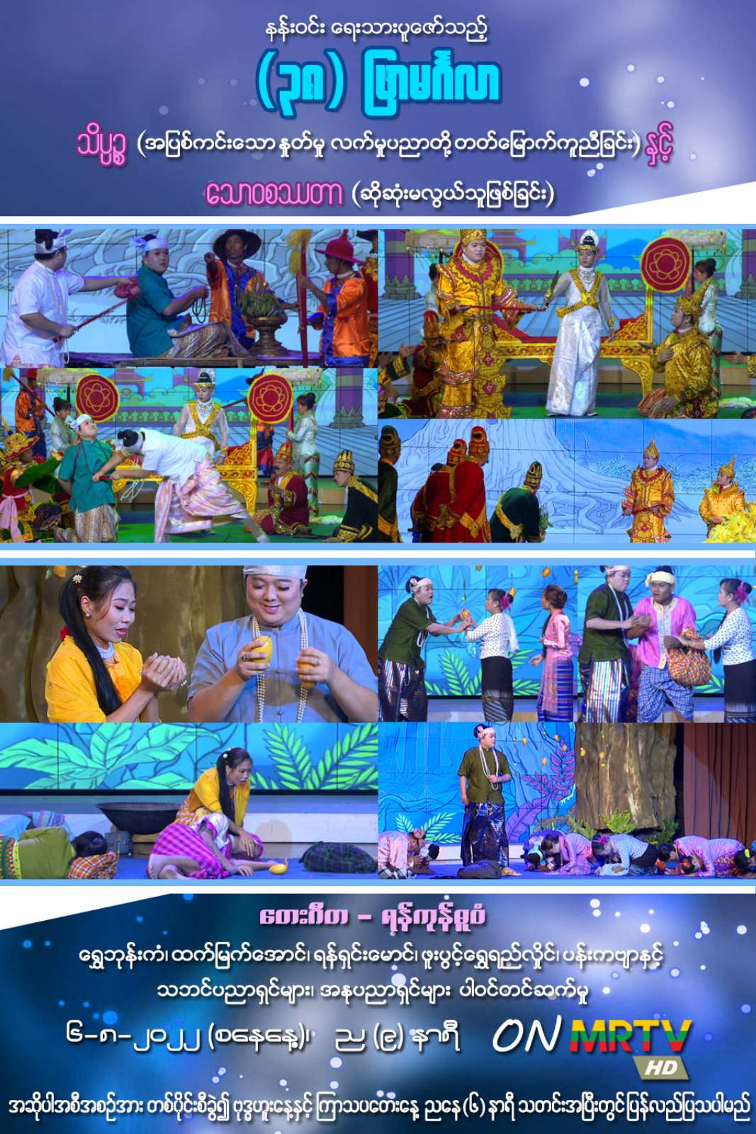 လူငယ်လူရွယ်များနှင့် ကလေးငယ်များ ယဉ်ကျေးလိမ္မာစေရန်နှင့် အသိပညာဗဟုသုတ တိုးပွား စေရန်အပြင် ဇာတ်သဘင် ကြိုက်နှစ်သက်ကြသည့်  မိဘပြည်သူများအတွက်  “(၃၈)ဖြာမင်္ဂလာ အစီအစဉ်” ဆန်းသစ်တင်ဆက်မှုကို မေ ၂၁ ရက်နေ့မှစတင်၍ အပတ်စဉ်စနေနေ့တိုင်း မြန်မာ့အသံနှင့် ရုပ်မြင်သံကြား၏ MRTV-HD Channel မှ ည ၈ နာရီသတင်းအပြီးတွင် ထုတ်လွှင့်ပြသလျက်ရှိသည်။
