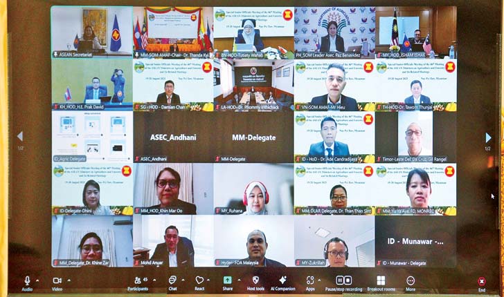 မြန်မာနိုင်ငံက အိမ်ရှင်နိုင်ငံအဖြစ် လက်ခံကျင်းပသည့် (၄၆) ကြိမ်မြောက် အာဆီယံလယ်ယာစိုက်ပျိုးရေးနှင့် သစ်တောဆိုင်ရာဝန်ကြီးများ အစည်းအဝေး၏ အဆင့်မြင့်အရာရှိကြီးများ အထူးအစည်းအဝေးနှင့် ဆက်စပ်အစည်းအဝေးကို ဩဂုတ် ၁၉ ရက်မှ ၂၀ ရက်အထိ အွန်လိုင်းစနစ်ဖြင့် ကျင်းပခဲ့ပြီး စိုက်ပျိုးရေး၊ မွေးမြူရေးနှင့်ဆည်မြောင်းဝန်ကြီးဌာန၊ စီမံကိန်းဦးစီးဌာနညွှန်ကြားရေးမှူးချုပ် ဒေါက်တာ သန္တာကြည်က သဘာပတိအဖြစ် တာဝန်ယူဆောင်ရွက်သည်။