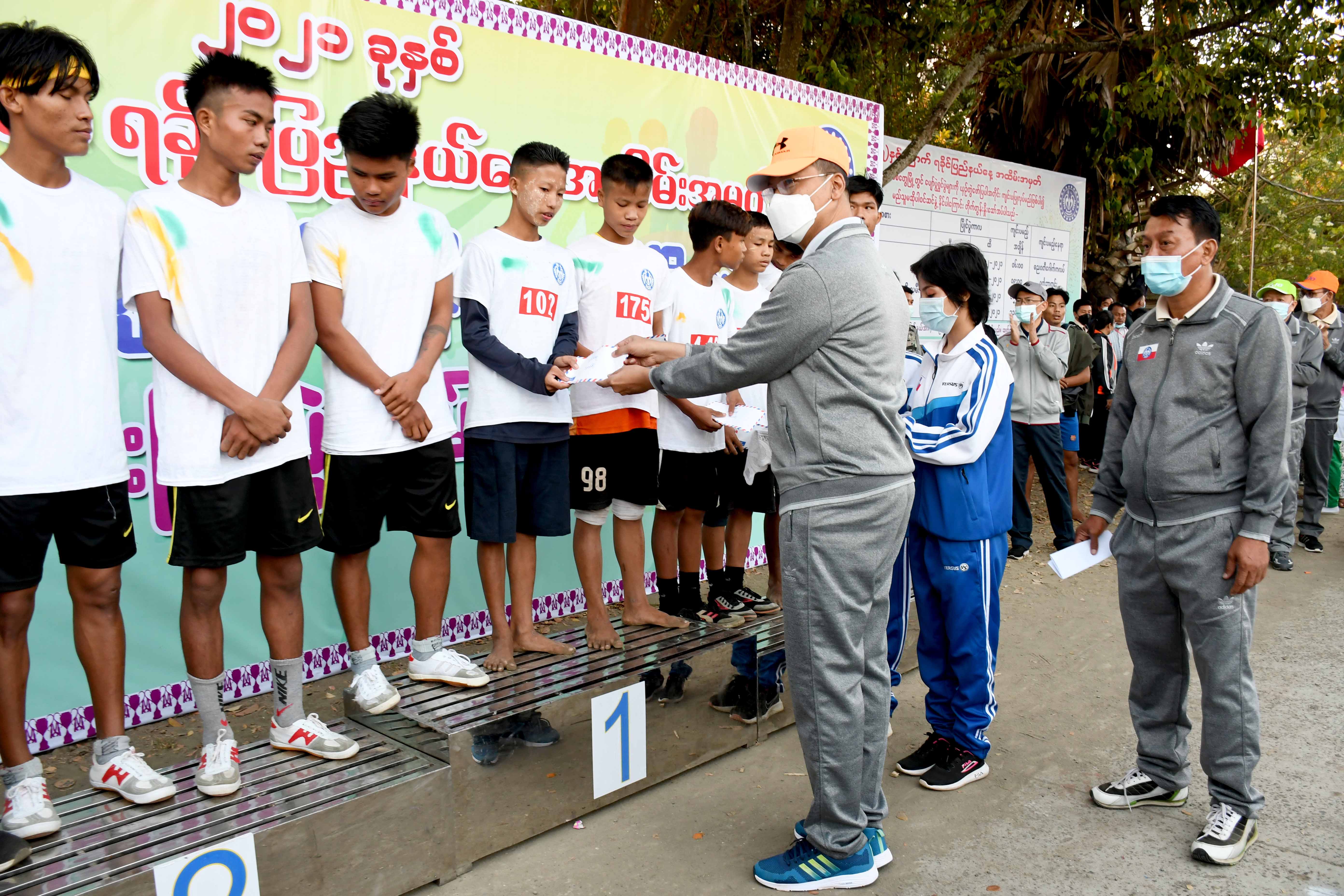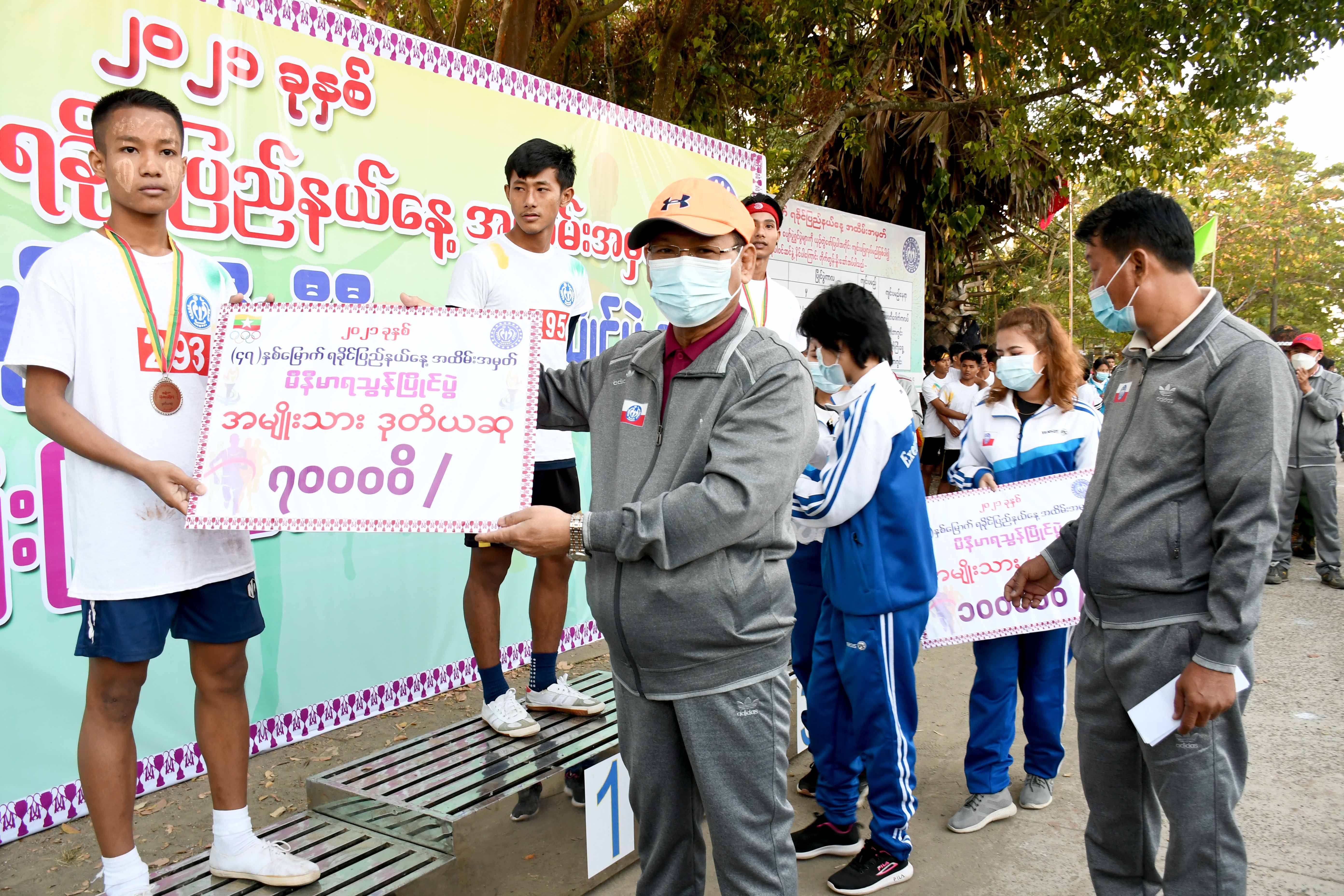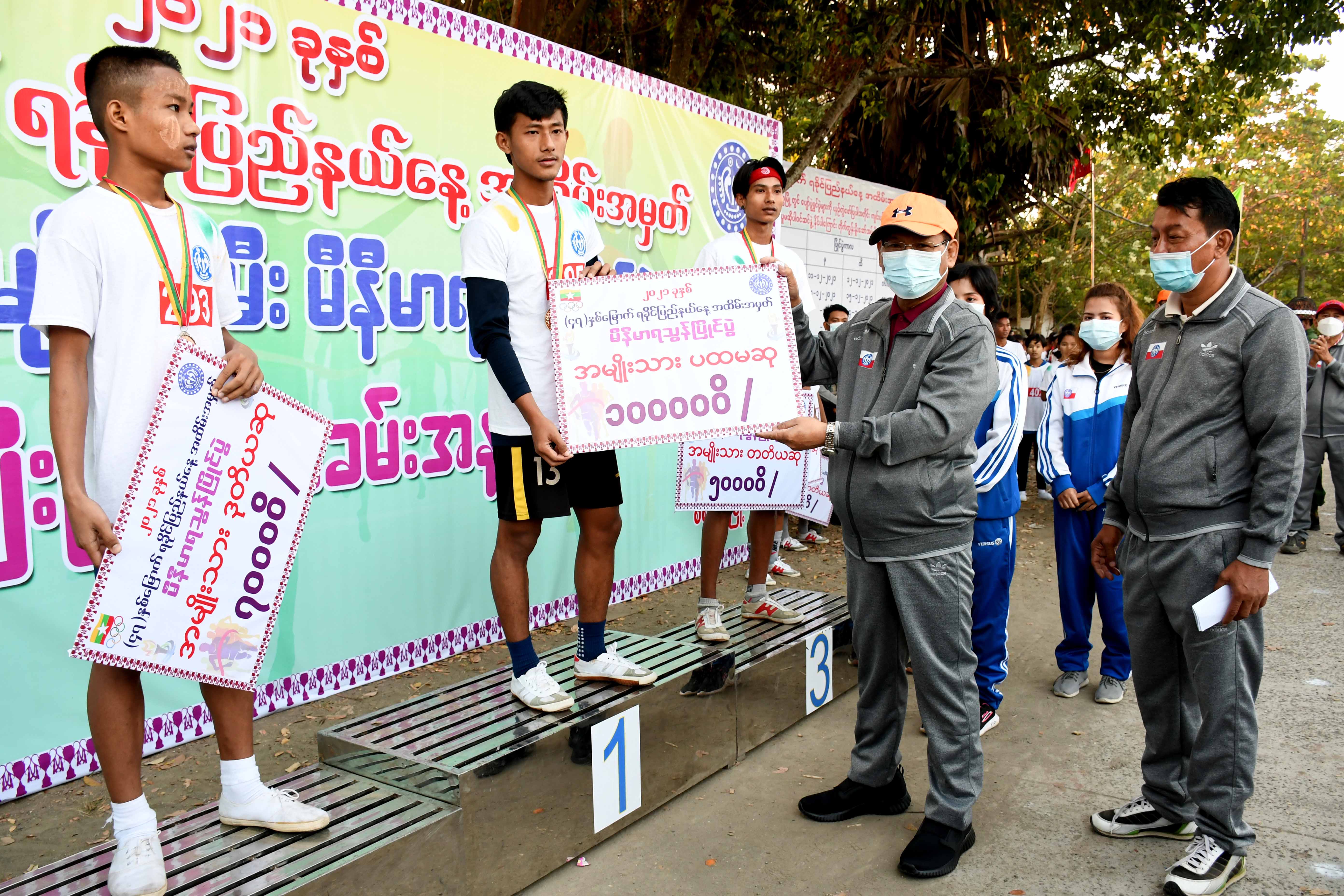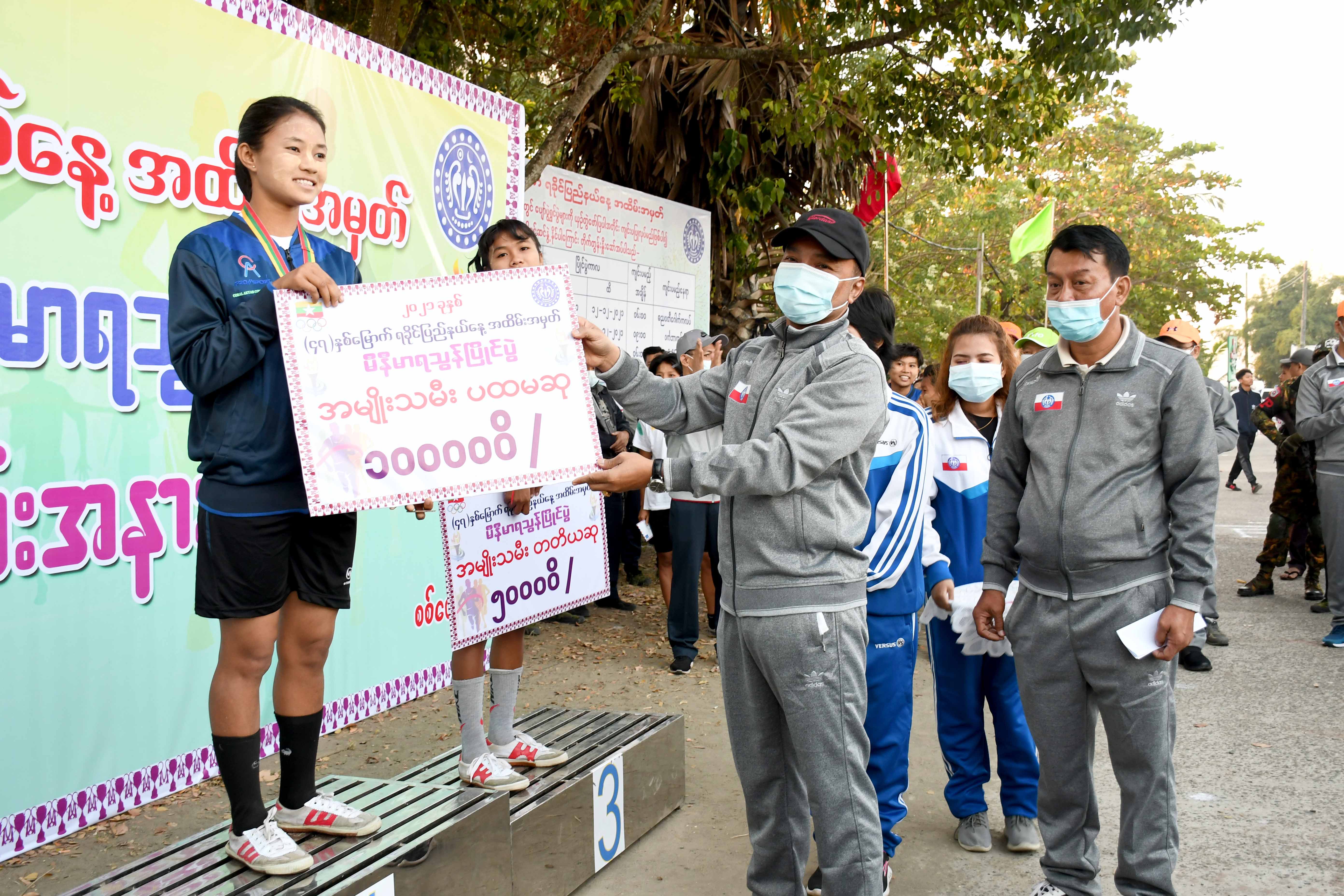 ထို့နောက် အမျိုးသမီး မီနီမာရသွန်ပြိုင်ပွဲတွင် ပထမ၊ ဒုတိယနှင့် တတိယဆုရရှိကြသော အားကစားသမားများအား အနောက်ပိုင်းတိုင်းစစ်ဌာနချုပ် တိုင်းမှူးက ဆုများပေးအပ်ချီးမြှင့်ပြီး အမျိုးသား မီနီမာရသွန်ပြိုင်ပွဲတွင် ပထမ၊ ဒုတိယနှင့် တတိယဆုရရှိကြသော အားကစားသမားများအား ပြည်နယ်ဝန်ကြီးချုပ်က ဆုများပေးအပ်ချီးမြှင့်ကြသည်။ အမျိုးသမီး မီနီမာရသွန်ပြိုင်ပွဲတွင် နှစ်သိမ့်ဆုရရှိကြသော အားကစားသမား ၁၀ ဦးကို ပြည်နယ်စီးပွားရေးရာဝန်ကြီး ဦးစံရွှေမောင်ကလည်းကောင်း၊ အမျိုးသား မီနီမာရသွန်ပြိုင်ပွဲတွင် နှစ်သိမ့်ဆုရရှိကြသော အားကစားသမား ၁၀ ဦးကို ပြည်နယ်လုံခြုံရေးနှင့် နယ်စပ်ရေးရာဝန်ကြီး ဗိုလ်မှူးကြီး ကျော်သူရကလည်းကောင်း ဆုများပေးအပ်ကြသည်။ ယင်းနောက် ပြည်နယ်ဝန်ကြီးချုပ်၊ တိုင်းမှူး၊ ပြည်နယ်အစိုးရအဖွဲ့ဝင်များ၊ ပြည်နယ်အဆင့် ဌာနဆိုင်ရာများသည် ဆုရရှိသော အားကစားသမားများနှင့်အတူ စုပေါင်းမှတ်တမ်း တင်ဓာတ်ပုံရိုက်ကြသည်။