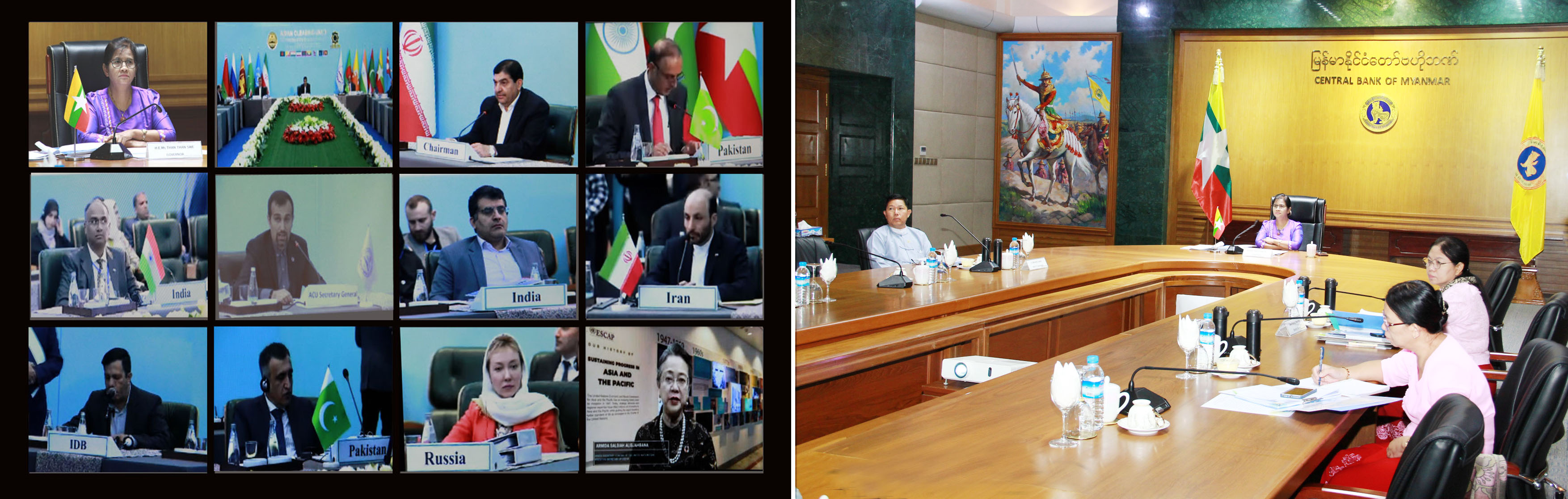 မြန်မာနိုင်ငံတော်ဗဟိုဘဏ်ဥက္ကဋ္ဌ ဒေါ်သန်းသန်းဆွေ ဦးဆောင်၍ ဒုတိယဥက္ကဋ္ဌ ဦးဇော်မြင့်နိုင်၊ ညွှန်ကြားရေး မှူးချုပ် ဒေါ်ခိုင်ရွှေဝါနှင့် မြန်မာနိုင်ငံတော်ဗဟိုဘဏ်၊ အေစီယူတာဝန်ခံအရာထမ်း တို့သည် ယနေ့ မွန်းလွဲ ၁၂နာရီ၄၅ မိနစ်တွင် အီရန်နိုင်ငံ၊ တီဟီရန်မြို့၌ ကျင်းပသည့် (၅၁)ကြိမ်မြောက် အာရှ ဗဟိုဘဏ်များငွေစာရင်း ရှင်းလင်းရေးအဖွဲ့ (အေစီယူ)ဒါရိုက်တာ အဖွဲ့အစည်းအဝေးသို့ Video Conferencing ဖြင့် တက်ရောက်သည်။