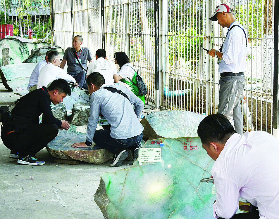 နံနက်ပိုင်းမှ စတင်၍ ပြည်တွင်း၊ ပြည်ပ ရတနာကုန်သည်များသည် မဏိရတနာ ကျောက်စိမ်းခန်းမ အတွင်း ခင်းကျင်းပြသထားသည့် ကျောက် စိမ်းအတွဲများနှင့် ခန်းမအပြင်ဘက် သတ်မှတ်နေရာ များအလိုက် ခင်းကျင်းပြသထားသည့် ကျောက်စိမ်းအတွဲများကို စိတ်ကြိုက်လေ့လာကြည့်ရှုကြသည်။