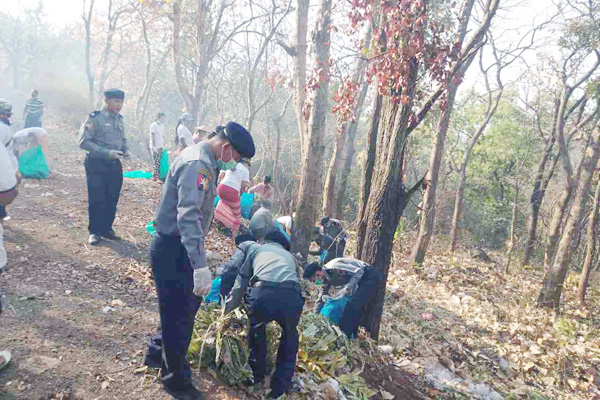 ထိုသို့ဆောင်ရွက်ရာတွင် ပုပ္ပားတောင်ကလပ် ရွှေဝန်းခြံ အနီးဝန်းကျင်၊ ရွှေဂူချောင် အနီးဝန်းကျင်နှင့် နဂါးဆောင်းတန်းရှိ ဈေးဆိုင်တန်းများတွင် စွန့်ပစ်အမှိုက်များ၊ ပလတ်စတစ်ဘူးခွံများကို လိုက်လံကောက်ယူ သိမ်းဆည်းခဲ့ကြပြီး စနစ်တကျ သွားရောက်စွန့်ပစ်ခဲ့ကြကြောင်း သိရသည်။