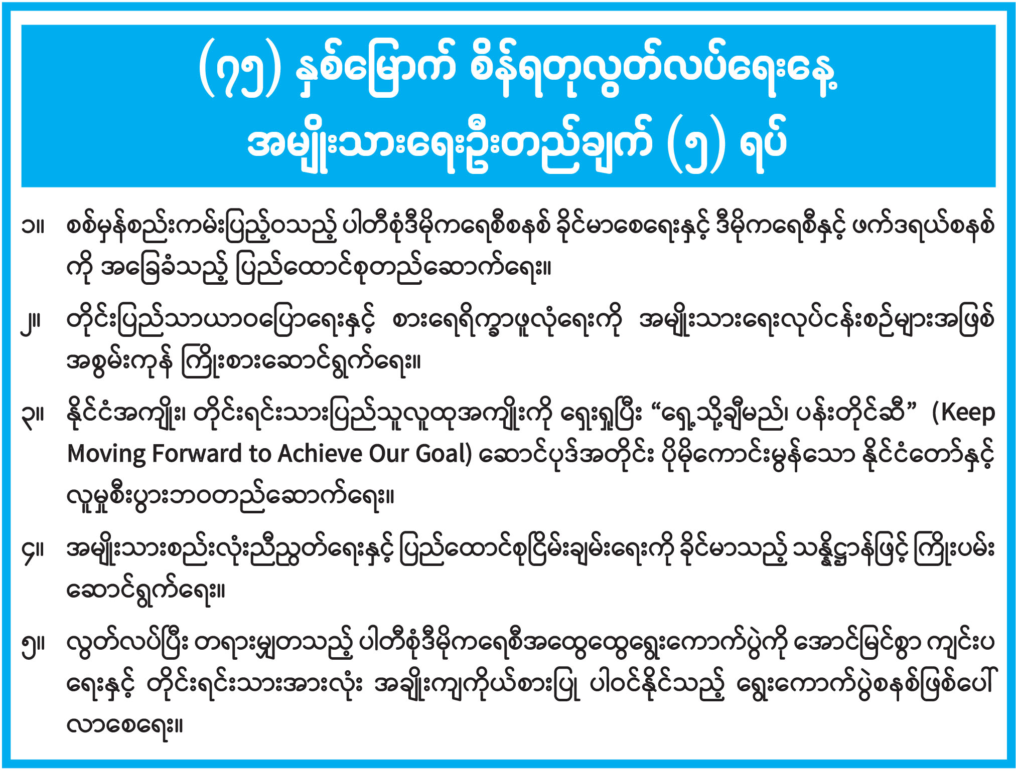 (၇၅)နှစ်မြောက် စိန်ရတုလွတ်လပ်ရေးနေ့ အမျိုးသားရေးဦးတည်ချက်( ၅ )ရပ်