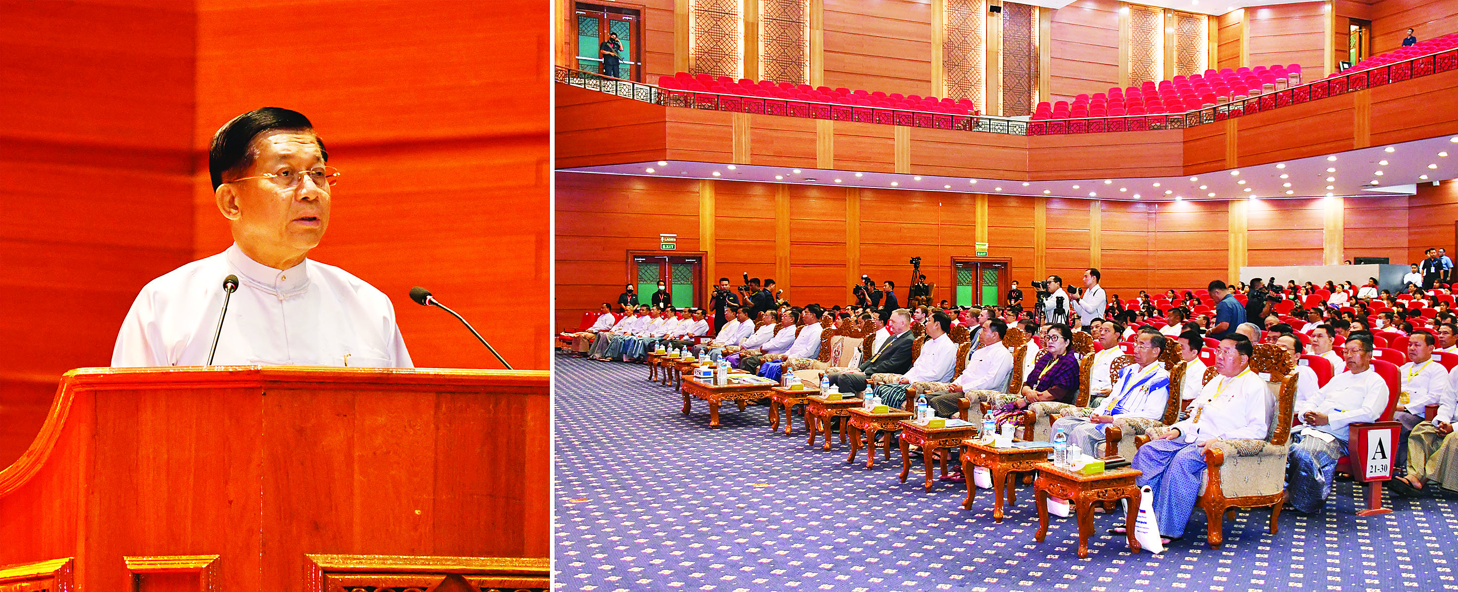 (၇၅) နှစ်မြောက် ပြည်ထောင်စုသမ္မတမြန်မာနိုင်ငံတော်နှင့် ရုရှားဖက်ဒရေးရှင်းနိုင်ငံတို့အကြား သံတမန်ဆက်သွယ်ထူထောင်မှုအထိမ်းအမှတ်အဖြစ် မြန်မာ-ရုရှား ချစ်ကြည်ရေးနှင့် ပူးပေါင်းဆောင်ရွက်ရေးဖိုရမ် ကို ယနေ့တွင် နေပြည်တော်ရှိ မြန်မာအပြည်ပြည်ဆိုင်ရာ ကွန်ဗင်းရှင်းဗဟိုဌာန-၂ ၌ ကျင်းပပြုလုပ်ရာ နိုင်ငံတော်စီမံအုပ်ချုပ်ရေးကောင်စီဥက္ကဋ္ဌ နိုင်ငံတော်ဝန်ကြီးချုပ် ဗိုလ်ချုပ်မှူးကြီး မင်းအောင်လှိုင် တက်ရောက် ပြီး အဖွင့်အမှာစကားပြောကြားသည်။