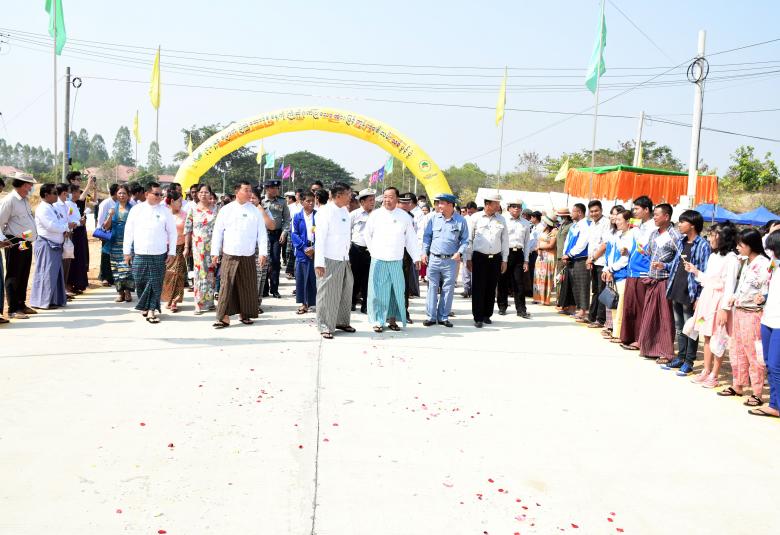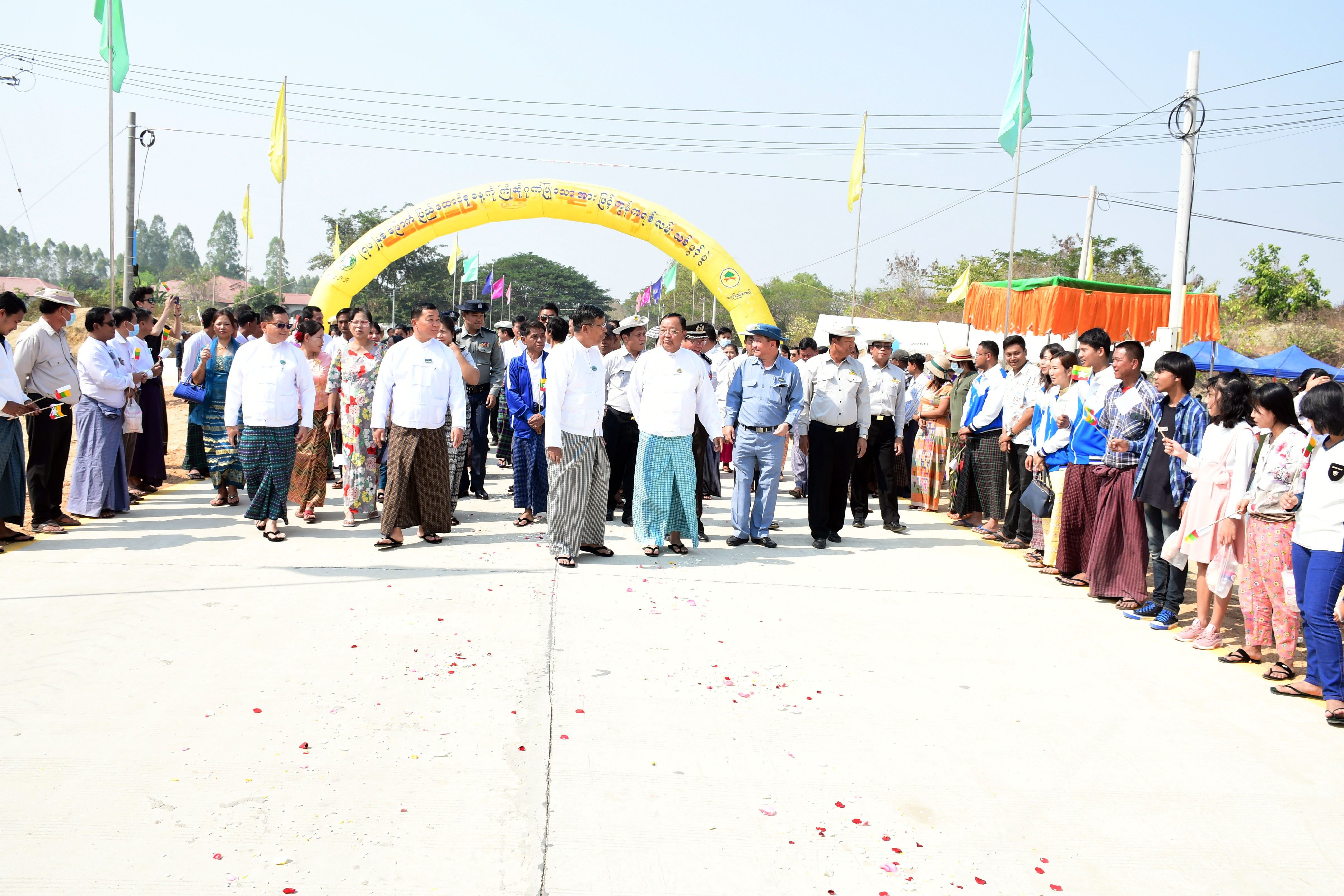 ထို့နောက် နေပြည်တော်ကောင်စီဥက္ကဋ္ဌ ၊ ဒုတိယဝန်ကြီး ဦးဝင်းဖေ၊ နေပြည်တော် ကောင်စီဝင် ဗိုလ်မှူးကြီးမင်းနောင်နှင့် တာဝန်ရှိသူများ က ကွန်ကရစ်လမ်းသစ်ကို ဖဲကြိုးဖြတ်ဖွင့်လှစ်ပေးကြပြီး ကွန်ကရစ်လမ်းသစ်ကို ကြည့်ရှုစစ်ဆေးကြသည်။