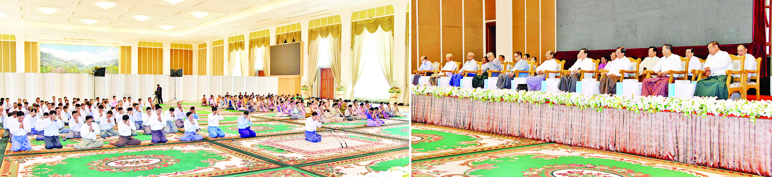 ထို့နောက် နိုင်ငံတော်စီမံအုပ်ချုပ်ရေး ကောင်စီဥက္ကဋ္ဌ တပ်မတော်ကာကွယ်ရေး ဦးစီးချုပ်နှင့်ဇနီး၊ တက်ရောက်လာကြ သည့် တပ်မတော်အရာရှိကြီးများနှင့် ဇနီးများက တပ်မတော်(ကြည်း၊ ရေ၊ လေ) မိသားစုများကိုယ်စား အငြိမ်းစား တပ်မတော်အရာရှိကြီးများအား မြန်မာ့ရိုးရာ ထုံးတမ်း အစဉ်အလာနှင့်အညီ ရိုသေစွာဖြင့် ဂါရဝပြုကန်တော့ကြသည်။