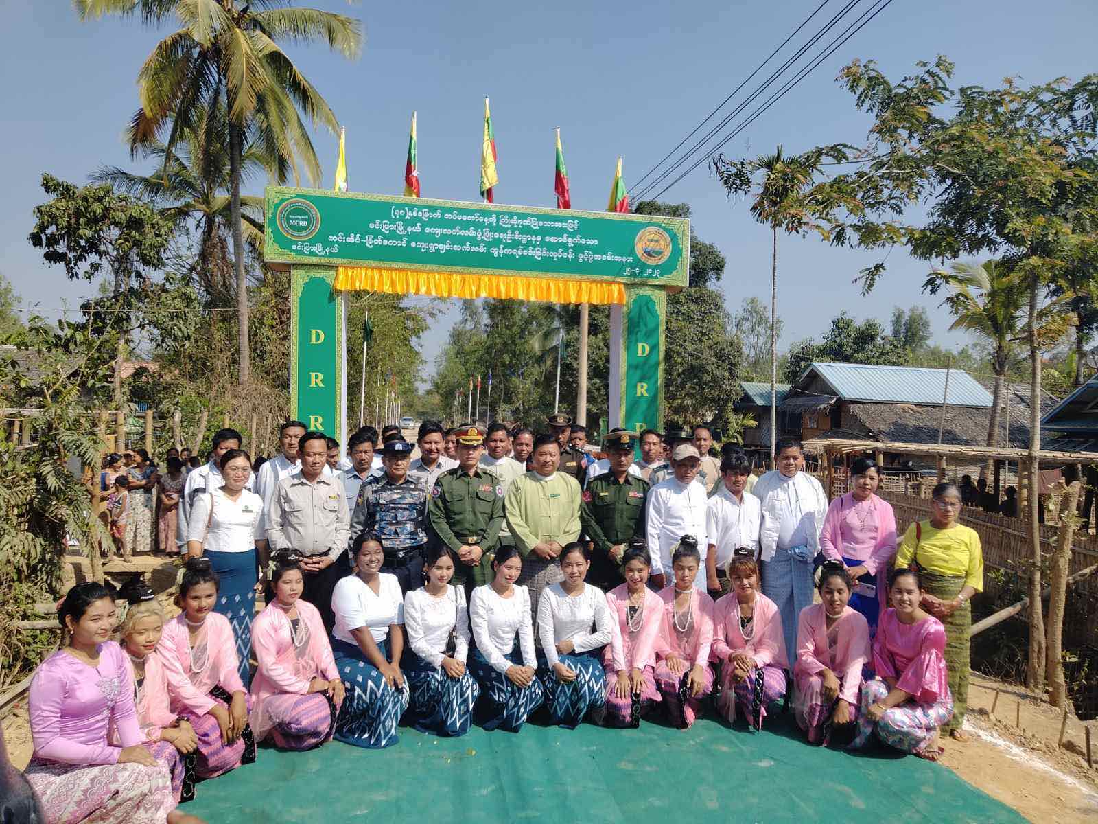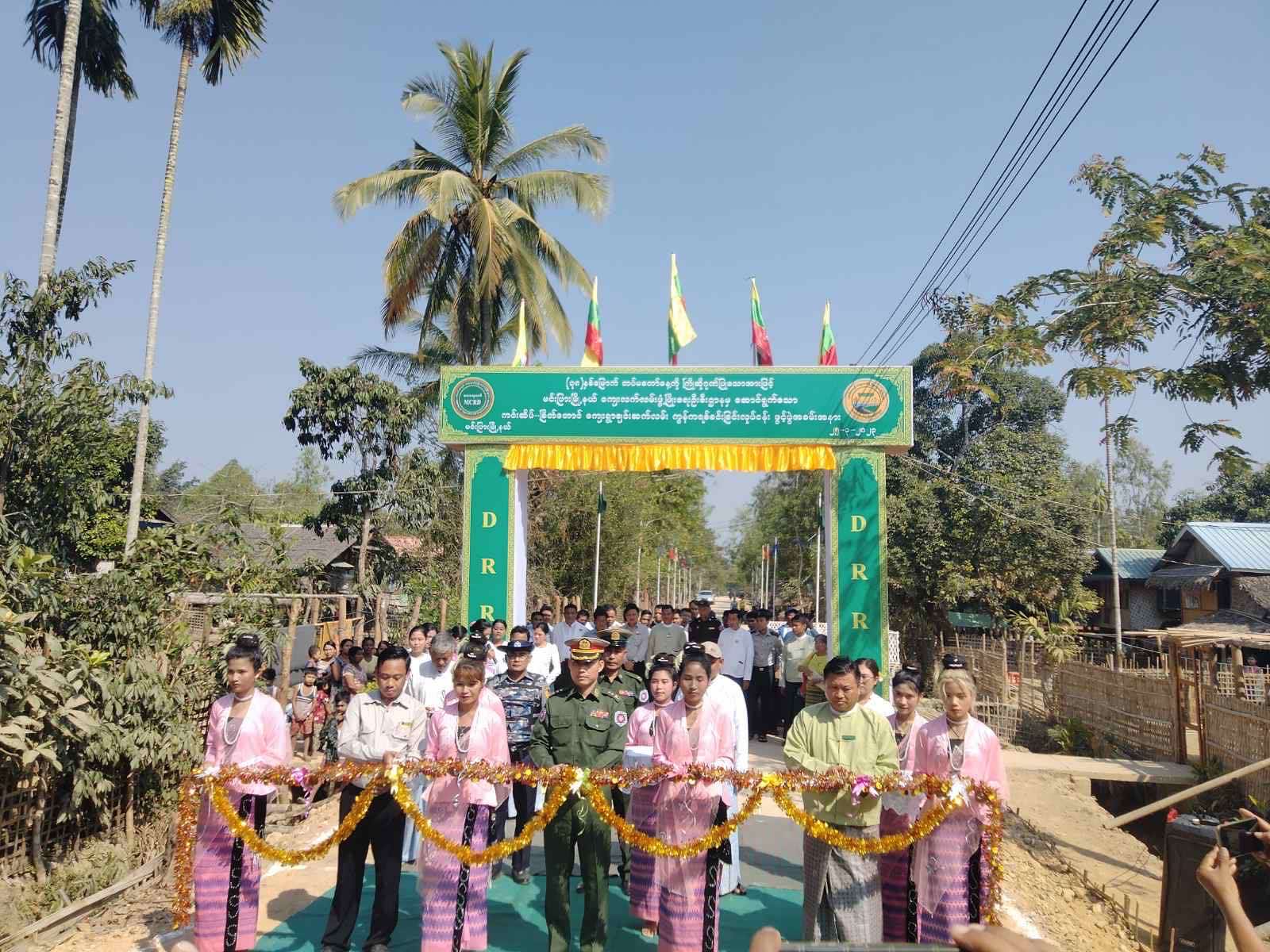 ဖွင့်ပွဲအခမ်းအနားတွင် မြို့နယ်စီမံအုပ်ချုပ်ရေးအဖွဲ့ ဥက္ကဋ္ဌ ဦးမျိုးစိုးမိုး၊ နည်းဗျူဟာမှူး ဗိုလ်မှူးကြီး ဦးဝင်းကို၊ ခရိုင်ကျေးလက်လမ်းဖွံ့ဖြိုးရေးဦးစီးဌာန ခရိုင်ဦးစီးမှူး ဦးခင်မောင်ဦးနှင့် ဌာနဆိုင်ရာတာဝန်ရှိသူများက ကျေးရွာချင်းဆက် ကွန်ကရစ်လမ်းမုခ်ဦးအား ဖဲကြိုးဖြတ်ဖွင့်လှစ်ပေးပြီး လမ်းသစ်အားလှည့်လည် ကြည့်ရှုစစ်ဆေးသည်။