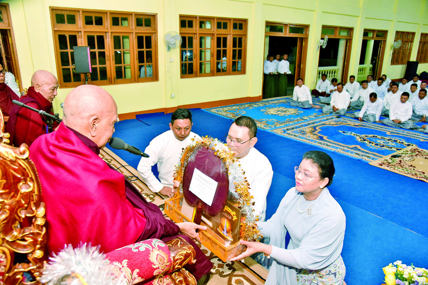 ထို့ပြင် (၇၈)နှစ်မြောက် တပ်မတော်(ရေ) နှစ်ပတ်လည်နေ့ အထိမ်းအမှတ် ပရိတ်တရားနာယူ ခြင်းနှင့် အရုဏ်ဆွမ်းဆက်ကပ် လှူဒါန်းခြင်း အခမ်းအနားကို သန်လျင်တပ်နယ် မဟာနာဝါနီက ဇယမင်္ဂလာဗိမာန်တော်၌ ကျင်းပရာ နိုင်ငံတော်သံဃမဟာ နာယကအဖွဲ့ ဥက္ကဋ္ဌ သန်လျင်မြို့ မင်းကျောင်းပထမပြန် စာသင်တိုက်ကြီး၏ ပဓာနနာယက အဂ္ဂမဟာပဏ္ဍိတ အဂ္ဂမဟာသဒ္ဓမ္မ ဇောတိကဓဇ ဒေါက်တာဘဒ္ဒန္တ စန္ဒိမာဘိဝံသနှင့် သန်လျင်မြို့ သမိုင်းဝင်ဆံတော်ရှင် ကျိုက်ခေါက် စေတီတော်မြတ်ကြီး ဂေါပကအဖွဲ့၏ ဩဝါဒါစရိယ သန်လျင်မြို့နယ် သံဃနာယက ဩဝါဒါစရိယ၊ သုဓမ္မာဝိနည်းဓိုရ် ပဝါရဏာဂိုဏ်း ဦးစီးဥက္ကဋ္ဌ မြို့ဦးစက်ပစ်ကွင်း ကျောင်း ပဓာနနာယက ဆရာတော် ဘဒ္ဒန္တတေဇအမှူးပြုသော သံဃာတော် အရှင်သူမြတ်များ ကြွရောက်ချီးမြှင့်တော်မူကြပြီး ကာကွယ်ရေးဦးစီးချုပ်(ရေ) ဗိုလ်ချုပ်ကြီးထိန်ဝင်းနှင့် ဇနီး၊ စစ်ဦးစီးအရာရှိချုပ်(ရေ) ဒုတိယ ဗိုလ်ချုပ်ကြီး အေးမင်းထွေးနှင့် ဇနီး၊ တပ်မတော်(ရေ)မှ အရာရှိ ကြီးများ၊ အရာရှိ၊ စစ်သည်များနှင့် မိသားစုဝင်များ၊ ဖိတ်ကြားထားသူများ တက်ရောက်ခဲ့ကြကြောင်း သိရသည်။