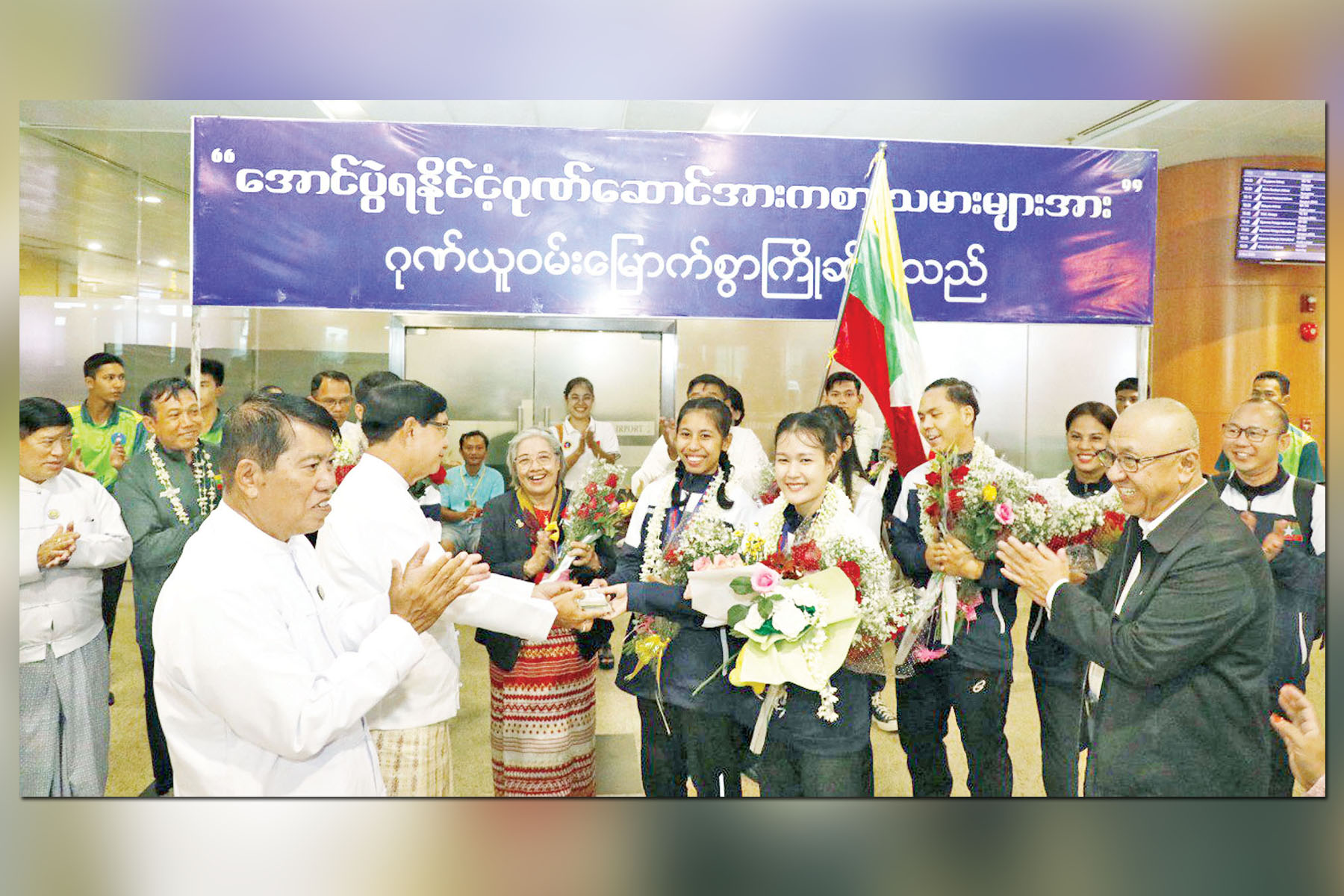 အောင်ပွဲရ မြန်မာဗိုဗီနမ်အသင်းသည် လေကြောင်းခရီးဖြင့် အင်ဒိုနီးရှားနိုင်ငံ ဘာလီမြို့မှ စင်ကာပူနိုင်ငံသို့လည်းကောင်း၊ စင်ကာပူနိုင်ငံမှတစ်ဆင့် ရန်ကုန်သို့ ယနေ့နံနက်ပိုင်းတွင် ပြန်လည်ရောက်ရှိလာရာ ရန်ကုန်တိုင်းဒေသကြီး ဝန်ကြီးချုပ် ဦးစိုးသိန်းနှင့် တိုင်းဒေသကြီးဝန်ကြီးများ၊ အားကစားနှင့် ကာယပညာဦးစီးဌာနမှ ဒုတိယညွှန်ကြားရေးမှူးချုပ်နှင့် တာဝန်ရှိသူများ၊ အားကစားနှင့် ကာယပညာသိပ္ပံ(ရန်ကုန်)မှ သင်တန်းသား သင်တန်းသူများက သောင်းသောင်းဖြဖြ လာရောက်ကြိုဆိုခဲ့ကြောင်း သိရသည်။