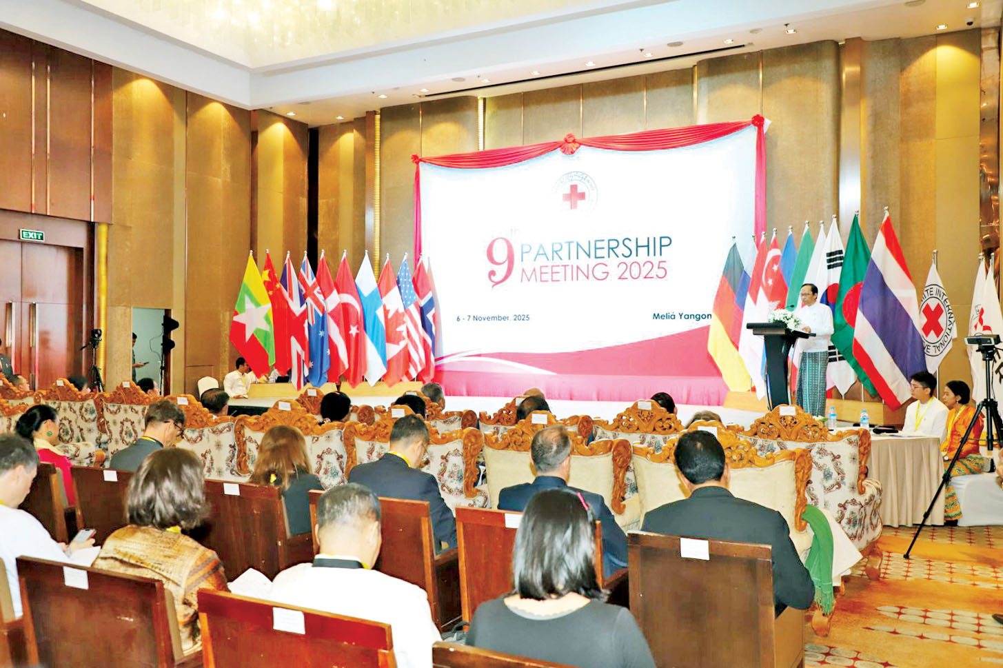 မြန်မာနိုင်ငံကြက်ခြေနီအသင်းက ကျင်းပသည့် (၉)ကြိမ်မြောက် မိတ်ဖက်များအစည်းအဝေးဖွင့်ပွဲ အခမ်းအနားကို ယနေ့နံနက်ပိုင်းက ရန်ကုန်မြို့ရှိ Melia Hotel ၌ ကျင်းပသည်။