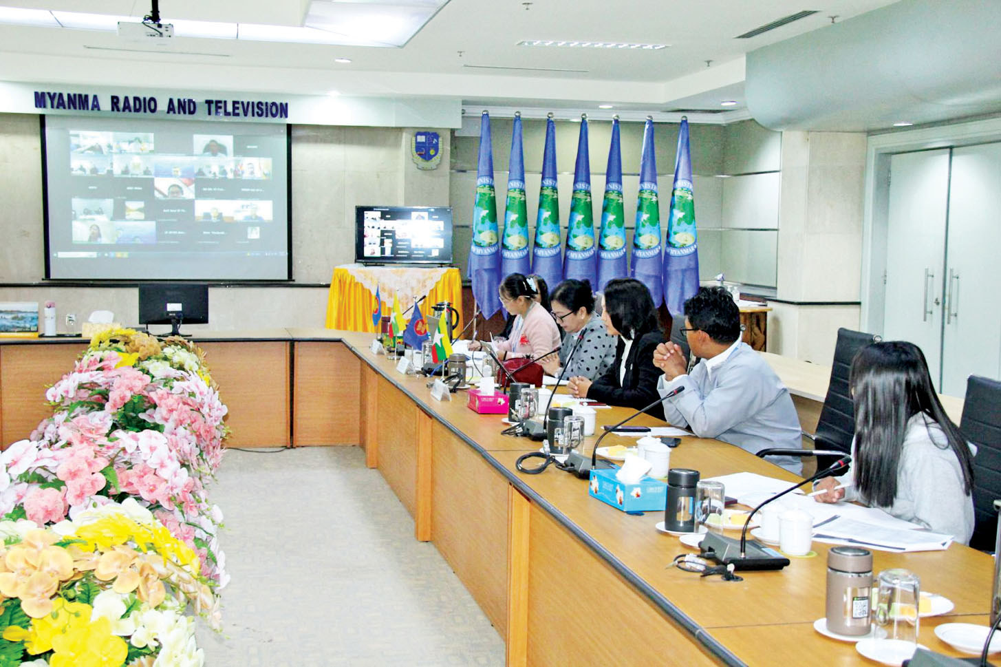 အာဆီယံအဆင့်မြင့်အရာရှိကြီးများအဆင့် ရုပ်သံအစီအစဉ် ထုတ်လုပ်ရေးဆိုင်ရာ လုပ်ငန်းအဖွဲ့ (SOMRI WG_CP) ၏ ဒသမအကြိမ်မြောက် လုပ်ငန်းအဖွဲ့အစည်းအဝေးကို ယနေ့နံနက် ၉ နာရီတွင် နေပြည်တော်ရှိ မြန်မာ့အသံနှင့်ရုပ်မြင်သံကြား၌ အွန်လိုင်းစနစ်ဖြင့် ကျင်းပသည်။
