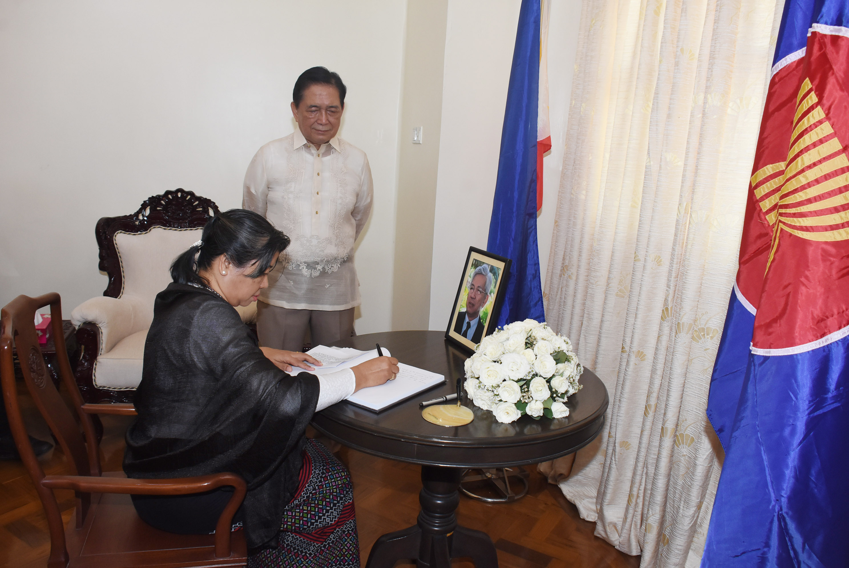 အာဆီယံအတွင်းရေးမှူးချုပ်ဟောင်း Hon.Rodolfo C. Severino သည် ဧပြီ(၁၉)ရက် သောကြာနေ့တွင် ကွယ်လွန်သွားသည့်အတွက် နိုင်ငံခြားရေးဝန်ကြီးဌာန မဟာဗျူဟာလေ့လာရေးနှင့် လေ့ကျင့်ရေးဦးစီးဌာန ညွှန်ကြားရေးမှူးချုပ် ဒေါ်ကေသီစိုး သည် ယနေ့နံနက် ၁၀ နာရီတွင် ရန်ကုန်မြို့ ဗဟန်းမြို့နယ် ဖိုးစိန်လမ်း အမှတ် (၂၁)ရှိ မြန်မာနိုင်ငံဆိုင်ရာ ဖိလစ်ပိုင်နိုင်ငံသံရုံးသို့ သွားရောက်၍ ဝမ်းနည်းခြင်းအထိမ်းအမှတ် ဖွင့်လှစ်ထားရှိသည့် စာအုပ်၌ လက်မှတ်ရေးထိုးခဲ့သည်။