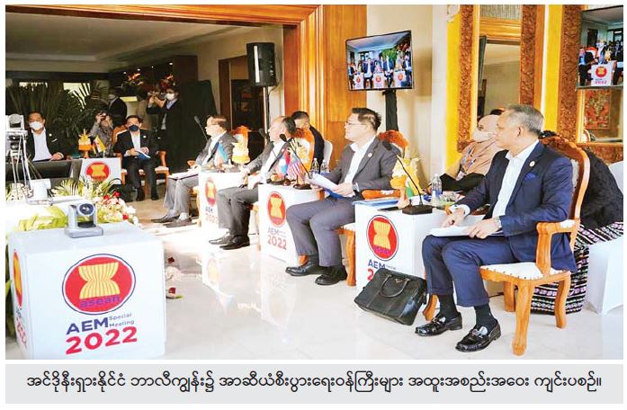 ကိုဗစ်-၁၉ အလွန် အာဆီယံစီးပွားရေးပြန်လည် ဦးမော့စေရေးအတွက် ကြိုးပမ်းဆောင်ရွက်ကြရာ မှာ ကြိုတင်မျှော်မှန်းမထားတဲ့ ရုရှား-ယူကရိန်း စစ်ပွဲအပါအဝင် ကမ္ဘာ့နိုင်ငံကြီးများရဲ့ စီးပွားရေး တုံ့နှေးလာမှုဟာ အာဆီယံနိုင်ငံအားလုံးအပေါ် စီးပွားရေးအရ သက်ရောက်မှုများရှိခဲ့ကြတာ ကြောင့် အာဆီယံဒေသတွင်းနိုင်ငံများအနေနဲ့ လက်ရှိရင်ဆိုင်ကြုံတွေ့နေရတဲ့ စိန်ခေါ်မှုနဲ့ အခက် အခဲတွေကို အာဆီယံရဲ့ ပေါင်းစည်းညီညွတ်မှုနဲ့ ဘယ်လိုဖြေရှင်းကြမလဲ၊ အာဆီယံရဲ့ အချက်အချာ ကျမှုကို ဘယ်လိုအသုံးချမလဲ၊ ဦးစားပေးမှုတွေကို ဘယ်လိုကိုက်ညီအောင် ဆောင်ရွက်နိုင်မလဲဆိုတဲ့ ကိစ္စရပ်တွေဟာ အလွန်အရေးပါပါတယ်။ လက်ရှိ ဖြစ်ပေါ်နေတဲ့ ရုရှား-ယူကရိန်းအရေးကြောင့် စက်သုံးဆီ၊ စားသုံးဆီနဲ့ ကုန်စည်ဈေးနှုန်းတွေ မြင့်တက်လာခြင်းအပေါ် ဖြေရှင်းဆောင်ရွက်နိုင်မှု၊ မရှိမဖြစ် အရေးကြီးအခြေခံကုန်စည်တွေကို ဒေသ တွင်းနိုင်ငံတွေအကြား ခွဲဝေသုံးစွဲမှုနဲ့ ငွေကြေး ဖောင်းပွမှုများ ဖြစ်ပေါ်နေတာတွေကို လျှော့ချနိုင်ဖို့ အတွက် ထုတ်လုပ်၊ ဖြန့်ဖြူး၊ တင်ပို့၊ ရောင်းချမှုနဲ့ စပ်လျဉ်းတဲ့ ထောက်ပံ့မှုကွင်းဆက်များ (Supply Chain)များ ပိုမိုကောင်းမွန်ရေး ဘယ်လိုထိန်းသိမ်း ဆောင်ရွက်ကြမလဲဆိုတာ အာဆီယံစီးပွားရေးရာ အနေနဲ့ ဆွေးနွေးအဖြေရှာခဲ့ကြပါကြောင်း မျှဝေ လိုက်ရပါတယ်။