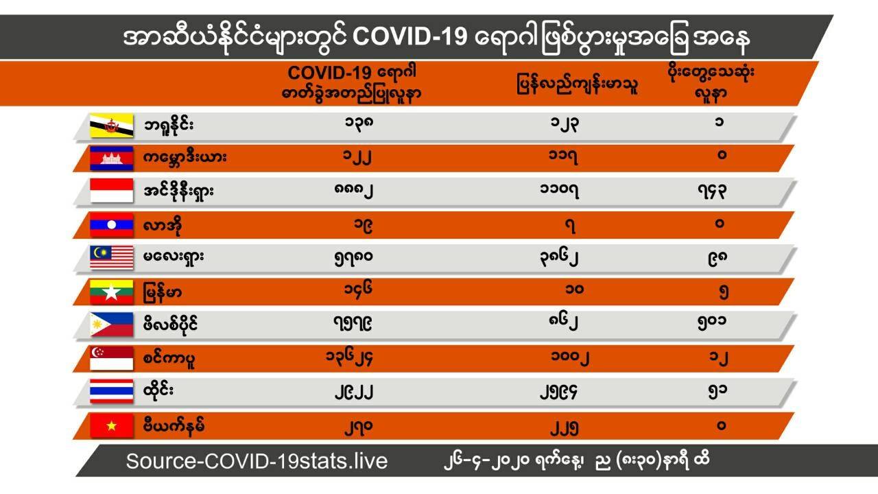 အာဆီယံနိုင်ငံများတွင် COVID-19 ရောဂါ ဖြစ်ပွားမှုအခြေအနေ