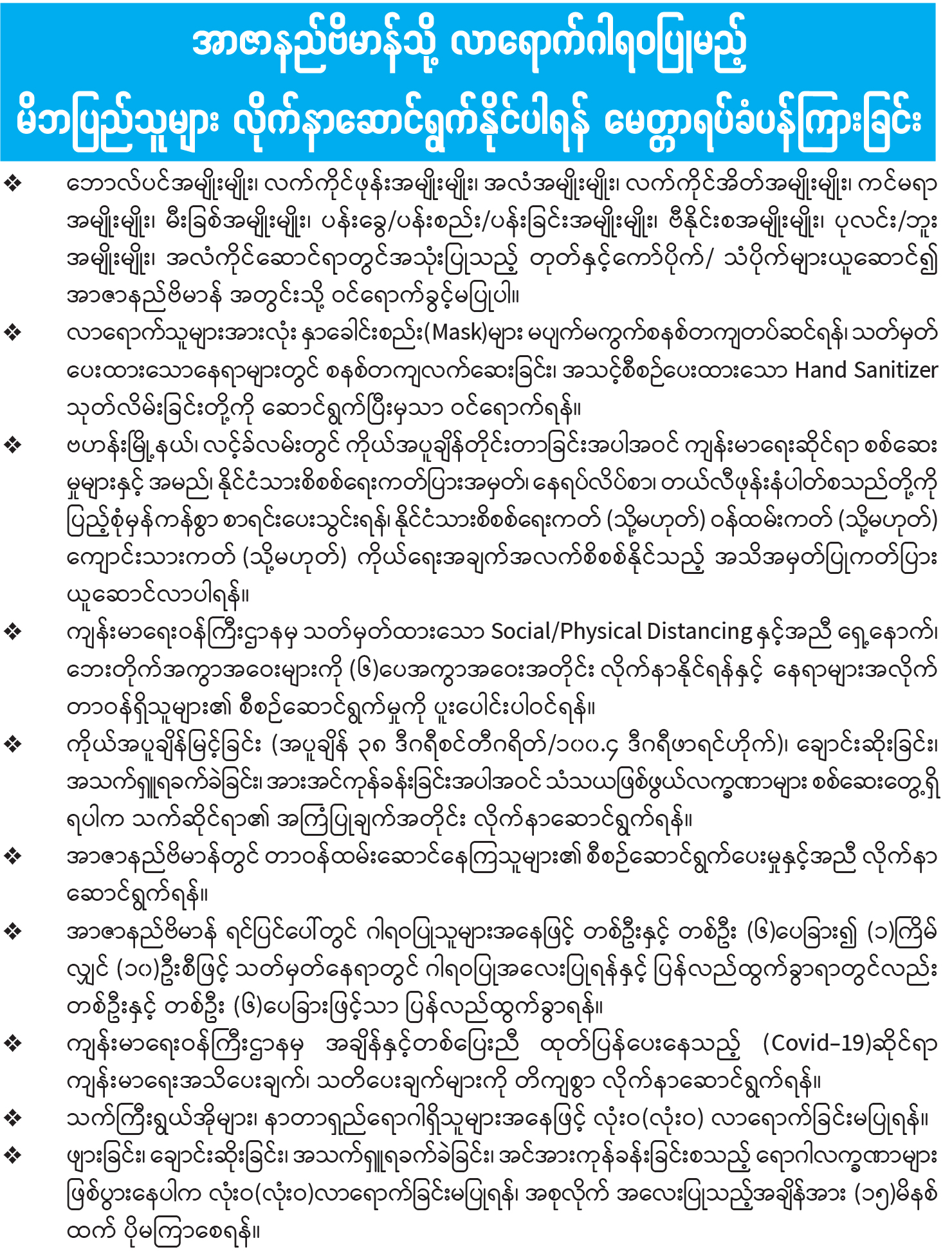 အာဇာနည်ဗိမာန်သို့ လာရောက်ဂါရဝပြုမည့် မိဘပြည်သူများ လိုက်နာဆောင်ရွက်နိုင်ပါရန် မေတ္တာရပ်ခံပန်ကြားခြင်း