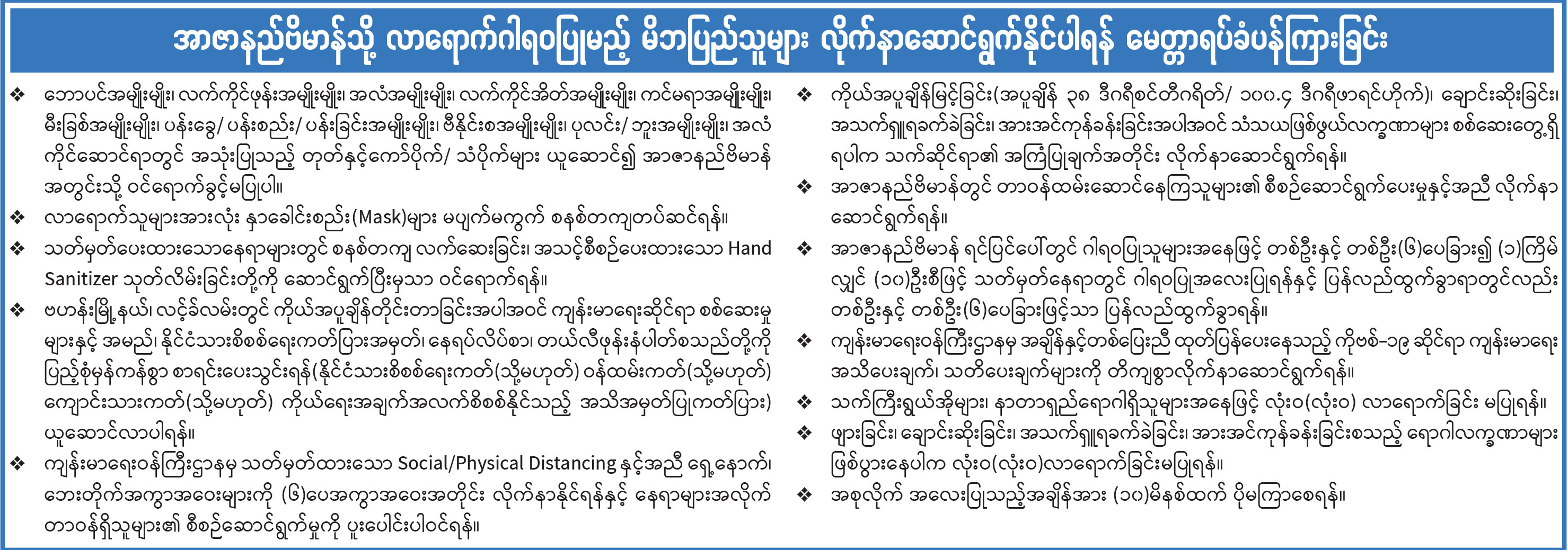 အာဇာနည်ဗိမာန်သို့ လာရောက်ဂါရဝပြုမည့် မိဘပြည်သူများ လိုက်နာဆောင်ရွက်နိုင်ပါရန် မေတ္တာရပ်ခံပန်ကြားခြင်း