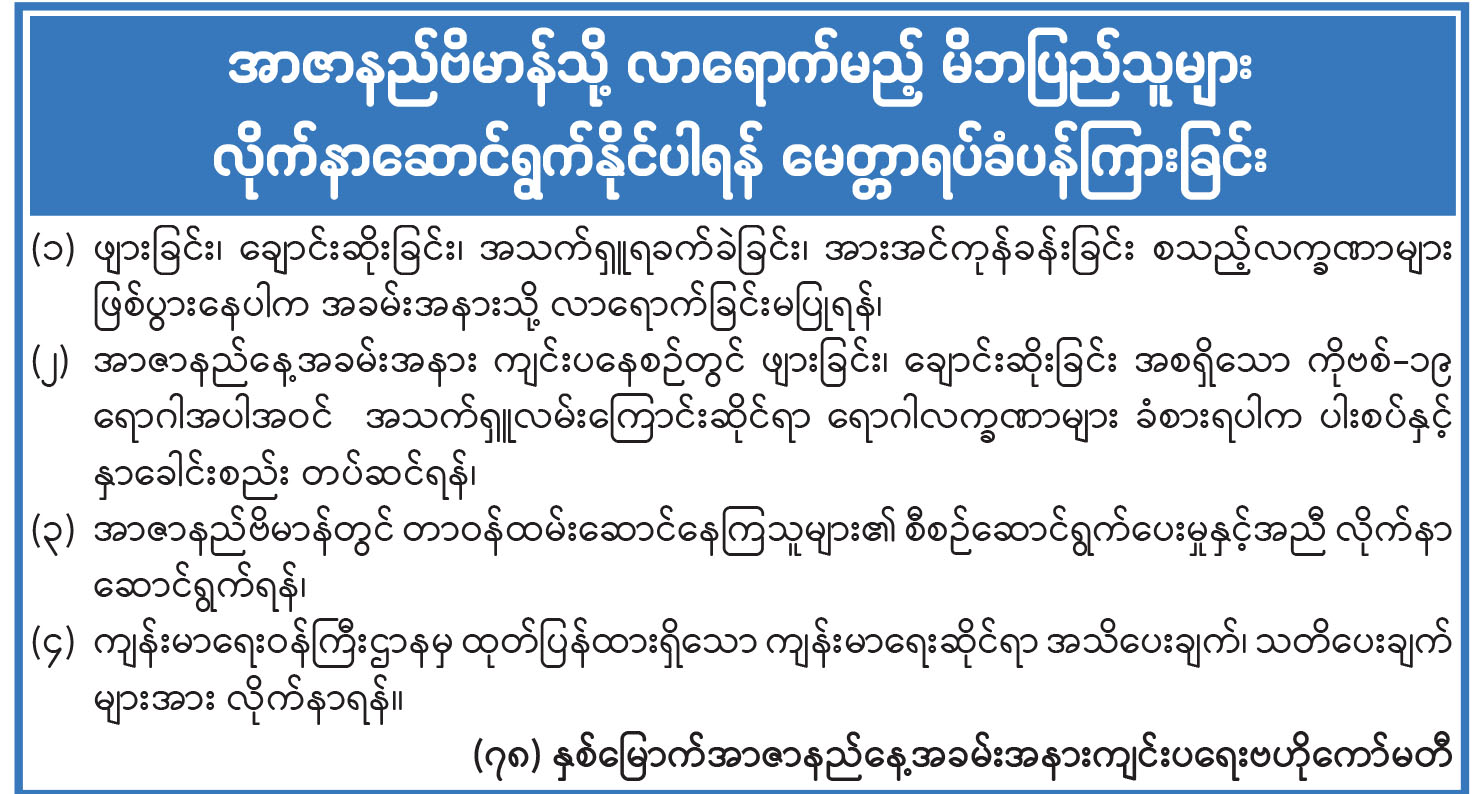 အာဇာနည်ဗိမာန်သို့ လာရောက်မည့် မိဘပြည်သူများ လိုက်နာဆောင်ရွက်နိုင်ပါရန် မေတ္တာရပ်ခံပန်ကြားခြင်း