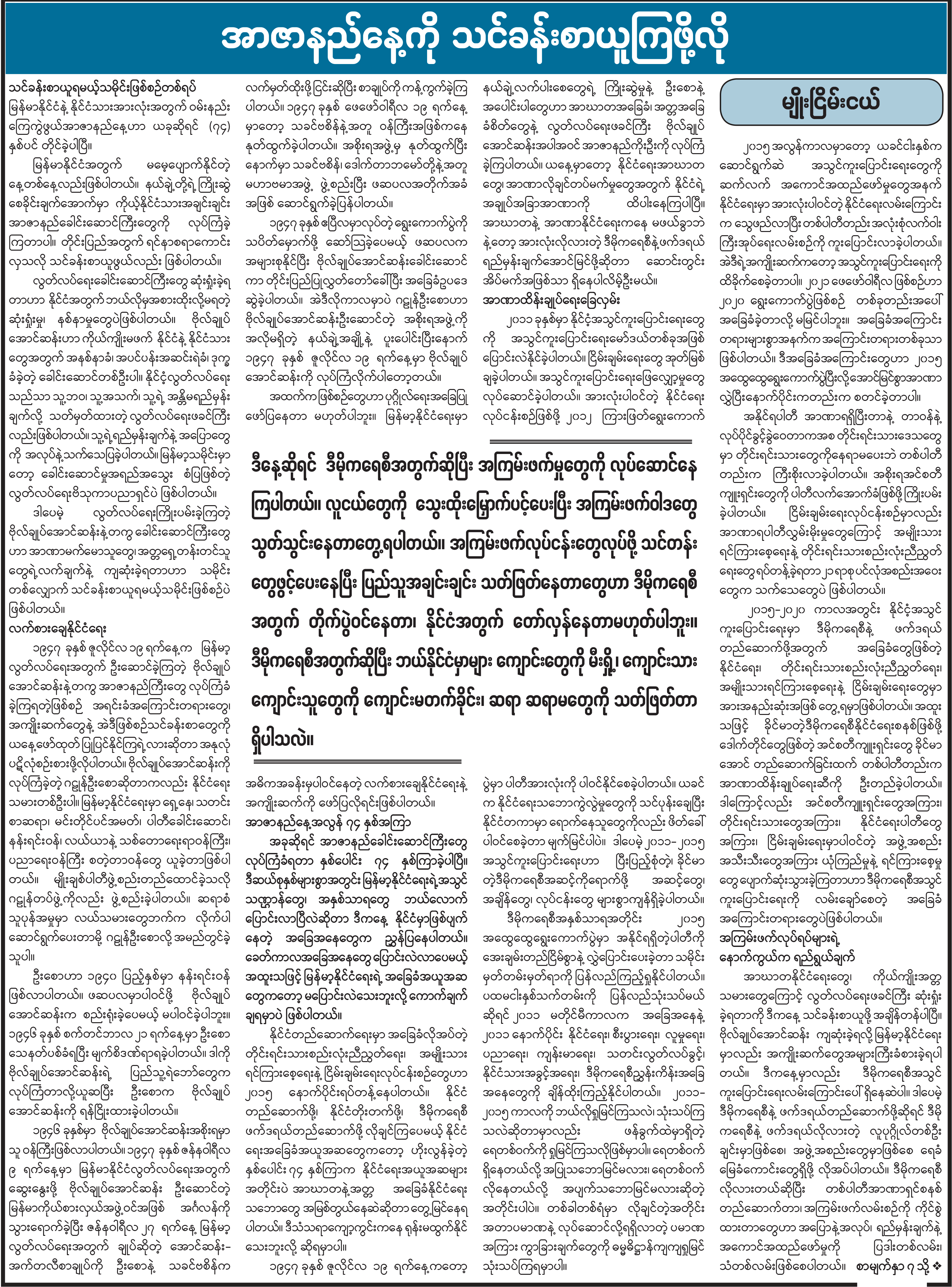 အာဇာနည်နေ့ကို သင်ခန်းစာယူကြဖို့လို့