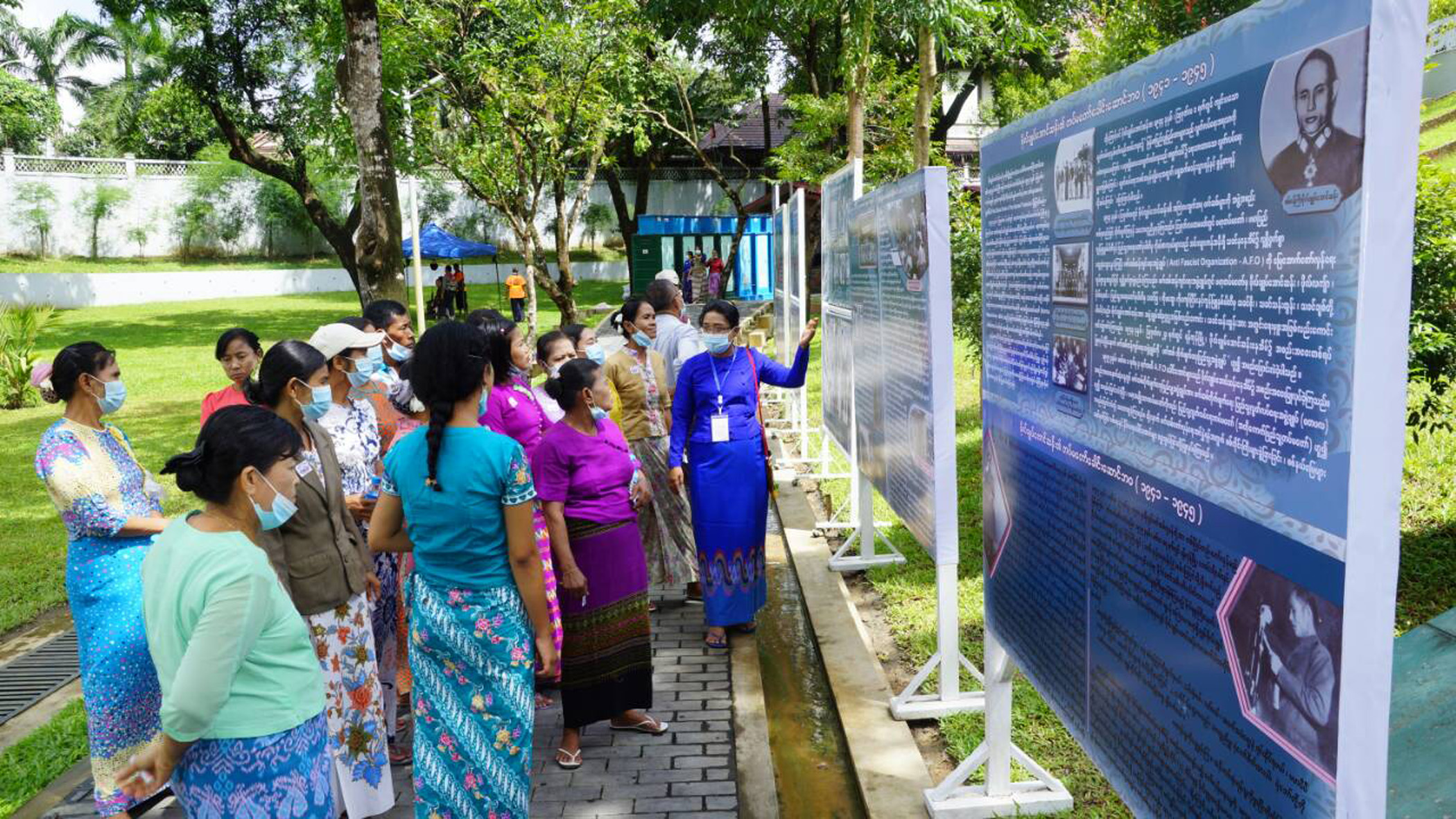“ဗိုလ်ချုပ်ပြတိုက်ကိုလာရောက်လေ့လာသူတွေကို သောက်ရေသန့်၊ နှာခေါင်းစည်းတွေ ပေးဝေပါတယ်။ ကျန်းမာရေးစောင့်ရှောက်မှုအနေနဲ့လည်း မြို့နယ် ကျန်းမာရေးအဖွဲ့၊ မြို့တော်စည်ပင်သာယာကျန်းမာရေးအဖွဲ့၊ မြန်မာနိုင်ငံ ကြက်ခြေနီအဖွဲ့တွေ အပြည့်အစုံရှိပါတယ်။ ပြည်သူလုံခြုံရေးအတွက်လည်း ပြည့်ပြည့်စုံစုံနဲ့ လာရောက်ကြည့်ရှုသူတွေ အဆင်ပြေအောင် ပြတိုက်တာဝန်ရှိသူတွေနဲ့ ဌာနဆိုင်ရာတွေ ဝိုင်းဝန်း ကူညီပြီး ဆောင်ရွက်ထားပါတယ်။ ဒီနေ့က အထူးပြပွဲအနေနဲ့ ပြတာပါ။ ဗိုလ်ချုပ်အောင်ဆန်းပြတိုက်ကို ပုံမှန် အင်္ဂါနေ့မှ တနင်္ဂနွေနေ့အထိ နေ့စဉ် နံနက် ၉ နာရီခွဲကနေ ညနေ ၄ နာရီအထိ ဖွင့်လှစ် ပြသပါတယ်။ တနင်္လာနေ့နဲ့ အစိုးရရုံး ပိတ်ရက်တွေဆို ပြတိုက်ပိတ်ပါတယ်”ဟု ဒေါ်သီသီသောင်းက ဆက်လက် ပြောသည်။