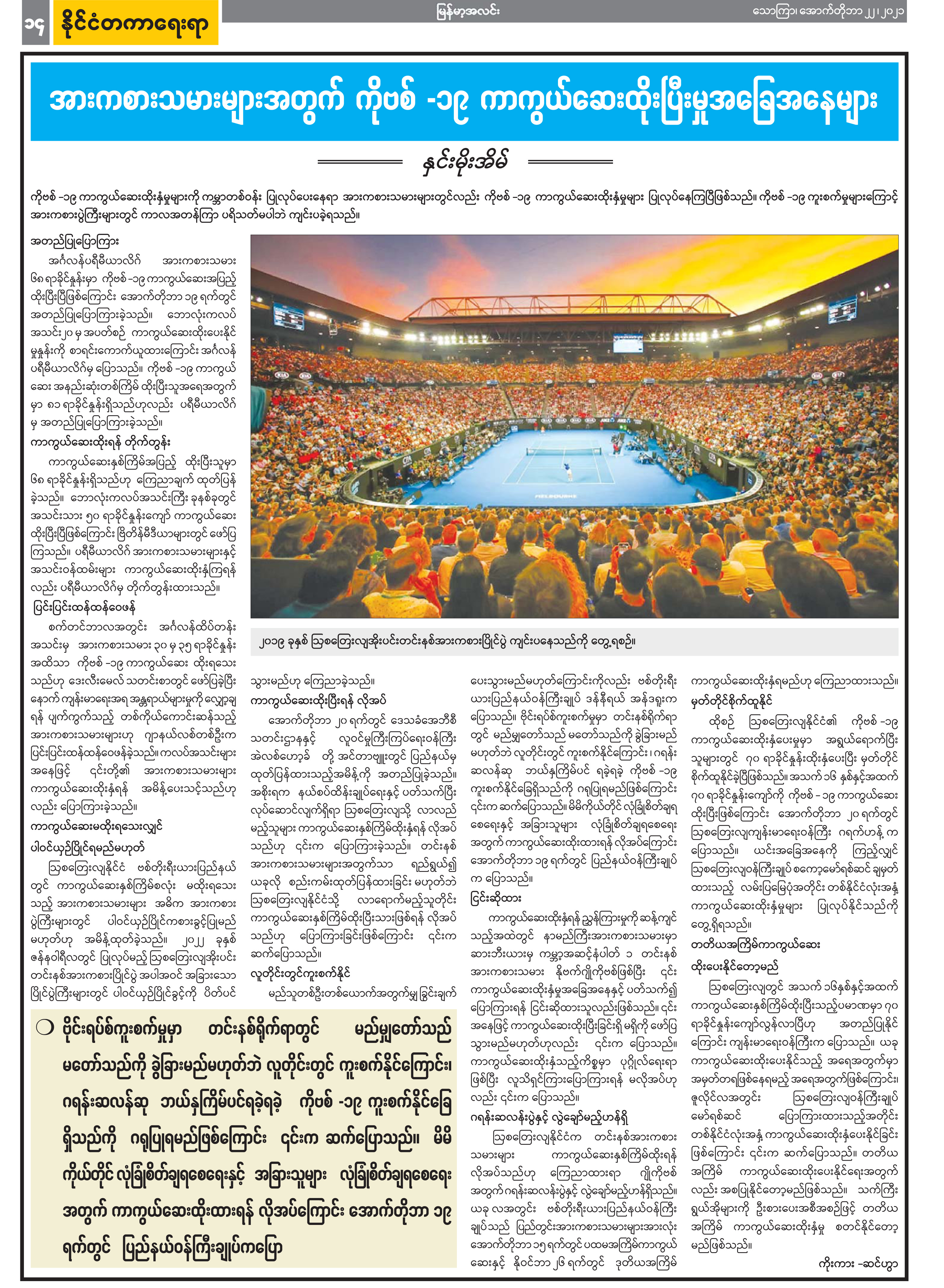 အားကစားသများများအတွက် ကိုဗစ်-၁၉ ကာကွယ်ဆေးထိုးပြီးမှု အခြေအနေများ