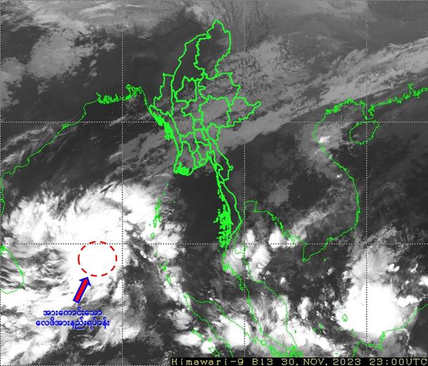 မိုးလေဝသနှင့်ဇလဗေဒညွှန်ကြားမှု ဦးစီးဌာနက ယနေ့နံနက် ထုတ်ပြန်သည့် မိုးလေဝသ သတင်းအရ ဘင်္ဂလား ပင်လယ်အော်အရှေ့တောင်ပိုင်းတွင် ဖြစ်ပေါ်နေသော အားကောင်းသော လေဖိအားနည်းရပ်ဝန်း (Well Marked Low Pressure Area) သည် ဆက်လက်တည်ရှိနေသည်။ အဆိုပါ အားကောင်းသော လေဖိအားနည်းရပ်ဝန်းသည် အနောက်-အနောက်မြောက်ဘက်သို့ ရွေ့လျားနိုင်ပြီး၊ နောက်(၁၂)နာရီအတွင်း မုန်တိုင်းငယ် (Depression) အဖြစ်သို့လည်းကောင်း၊ (၃.၁၂.၂၀၂၃) ရက်နေ့တွင် ဘင်္ဂလားပင်လယ်အော် အနောက်တောင်ပိုင်း၌ ဆိုင်ကလုန်းမုန်တိုင်း (Cyclonic Storm) အဖြစ်သို့လည်းကောင်း တဖြည်းဖြည်း အားကောင်းလာနိုင်သည်ဟု ခန့်မှန်းရသည်။ ကပ္ပလီပင်လယ်ပြင်နှင့် ဘင်္ဂလားပင်လယ်အော် မြောက်ပိုင်းတို့တွင် တိမ်အသင့်အတင့် ဖြစ်ထွန်းနေပြီး၊ ကျန်ဘင်္ဂလားပင်လယ်အော်တွင် တိမ်ထူထပ်နေသည်။