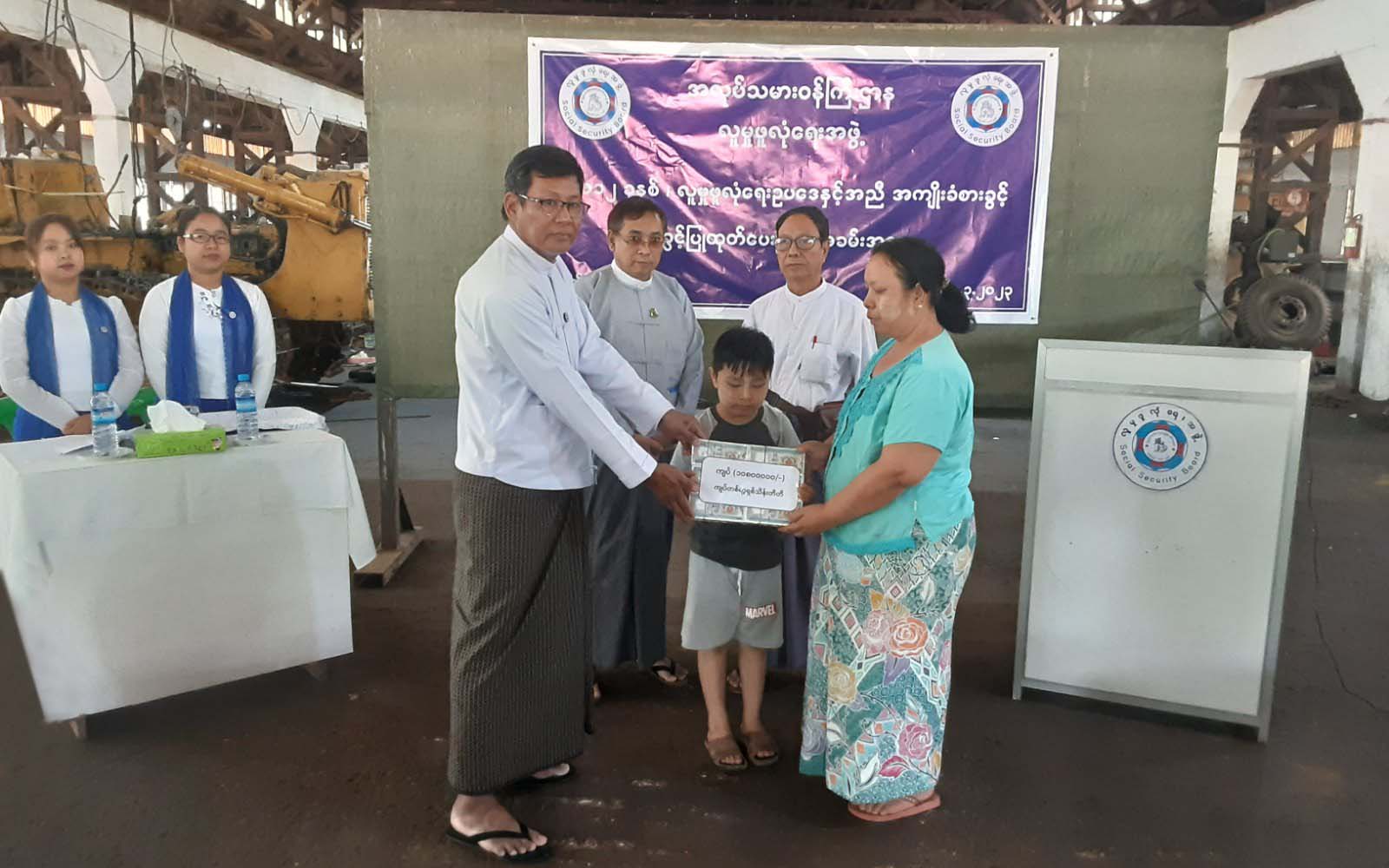 အလုပ်သမားဝန်ကြီးဌာန လူမှုဖူလုံရေးအဖွဲ့သည် ၂၀၁၂ ခုနှစ် လူမှုဖူလုံရေးဥပဒေနှင့်အညီ အကျိုးခံစားခွင့်များ ခွင့်ပြုထုတ်ပေးလျက်ရှိရာ ယမန်နေ့နံနက်ပိုင်းက ပဲခူးတိုင်းဒေသကြီး ပြည်မြို့ မြန်မာ့သစ်လုပ်ငန်း အခြေစိုက်အလုပ်ရုံမှ အာမခံအလုပ်သမား၏ လုပ်ငန်းခွင်ပြင်ပ ထိခိုက်သေဆုံးခဲ့ခြင်းအတွက် ကျန်ရစ်သူအကျိုးခံစားခွင့်ပြုငွေများကို ၎င်း၏မိသားစုထံ လက်ဝယ်အရောက် ထုတ်ပေးခဲ့ကြောင်း သိရသည်။