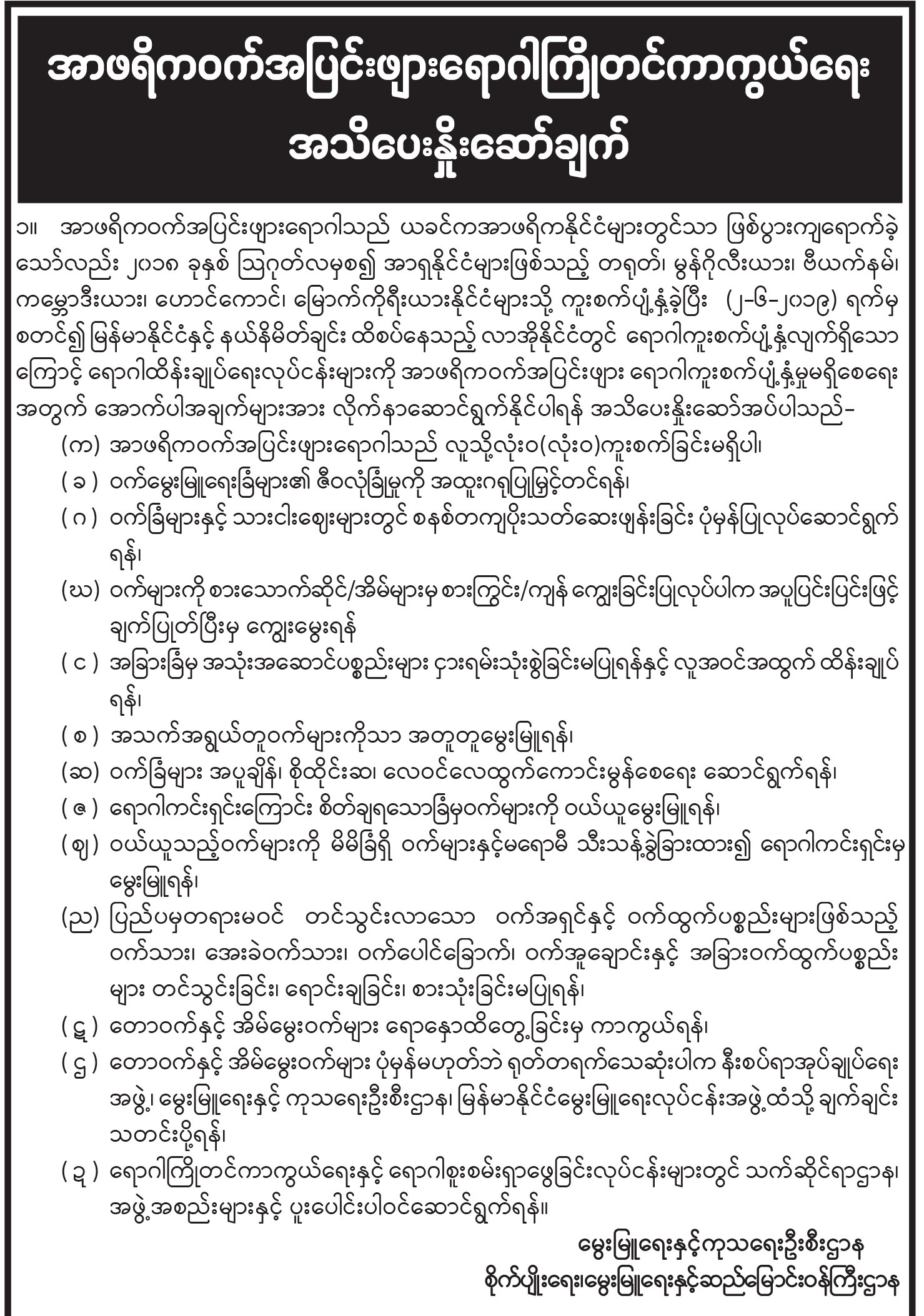 အာဖရိကဝက်အပြင်းဖျားရောဂါကြိုတင်ကာကွယ်ရေး အသိပေးနှိုးဆော်ချက်
