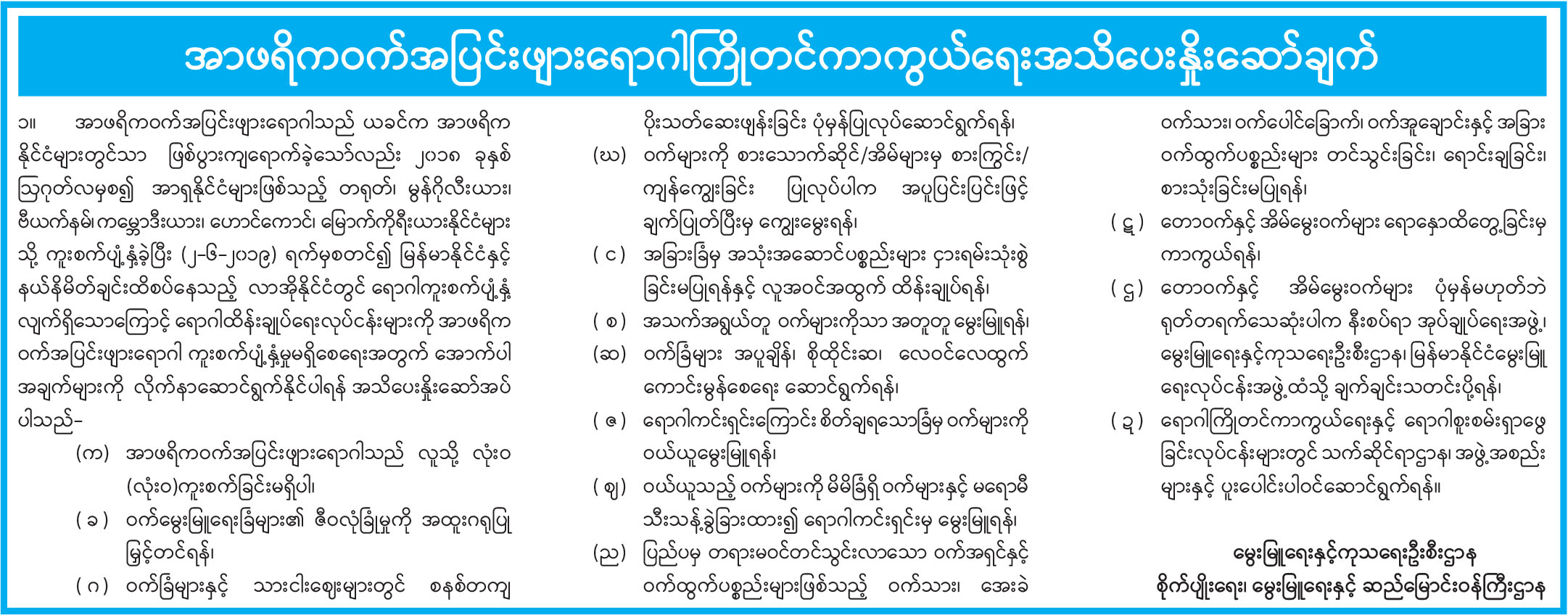 အာဖရိကဝက်အပြင်းဖျားရောဂါကြိုတင်ကာကွယ်ရေးအသိပေးနှိုးဆော်ချက်