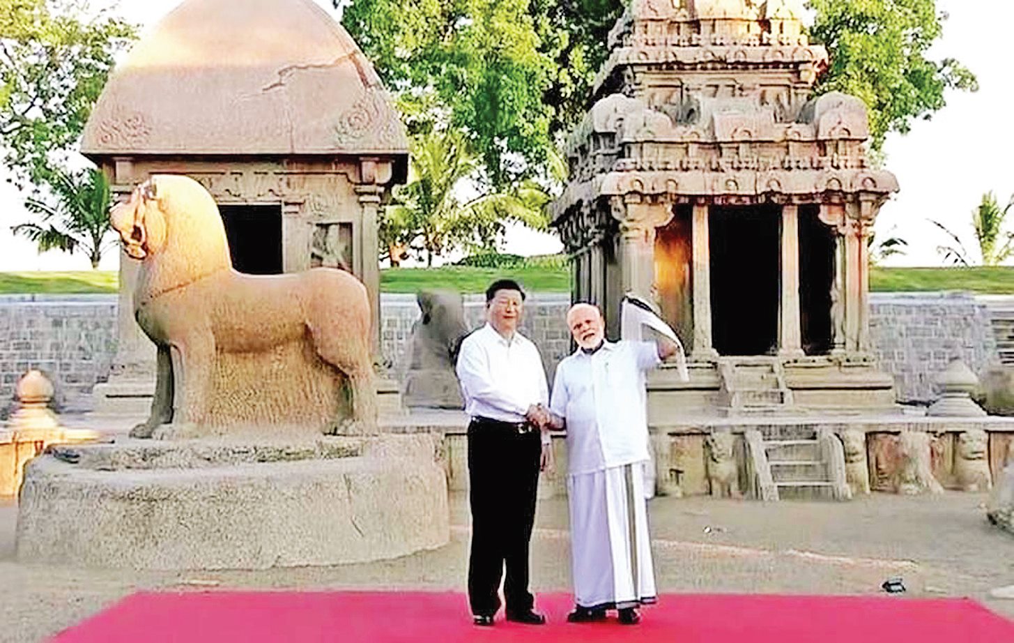 တရုတ်သမ္မတ ရှီသည် အိန္ဒိယခရီးစဉ်၏ ပထမနေ့တွင် ရှေးဟောင်းဘုရားကျောင်းများ တည်ရှိရာ မြို့ငယ်လေးဖြစ်သော မဟာပါလိပုရာဏ်မြို့တွင် အိန္ဒိယယဉ်ကျေးမှု၏ အငွေ့အသက်များကို နွေးထွေးစွာ တွေ့ထိခံစားခဲ့သည်။ “မိုနိုလစ်သစ်” ကျောက်ဆစ် လက်ရာများဖြင့် အတိပြီးသော အံ့ချီးဖွယ်ရာ အထိမ်းအမှတ် နေရာများတွင် သမ္မတ ရှီသည် အိန္ဒိယဝန်ကြီးချုပ်နှင့်အတူ တည်ငြိမ်အေးချမ်းစွာ ရှိနေခဲ့သည်။