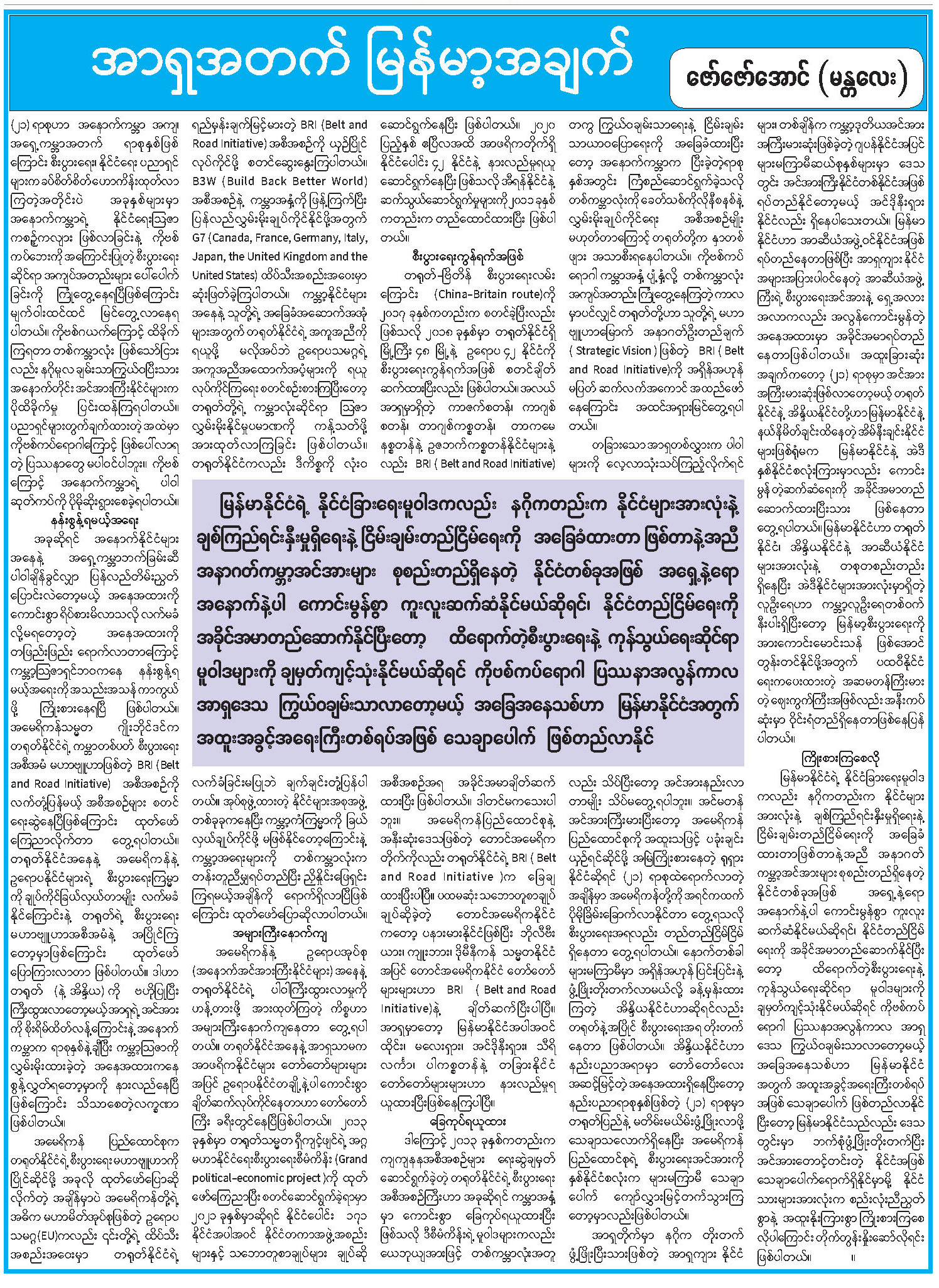အာရှအတက် မြန်မာ့အချက်
