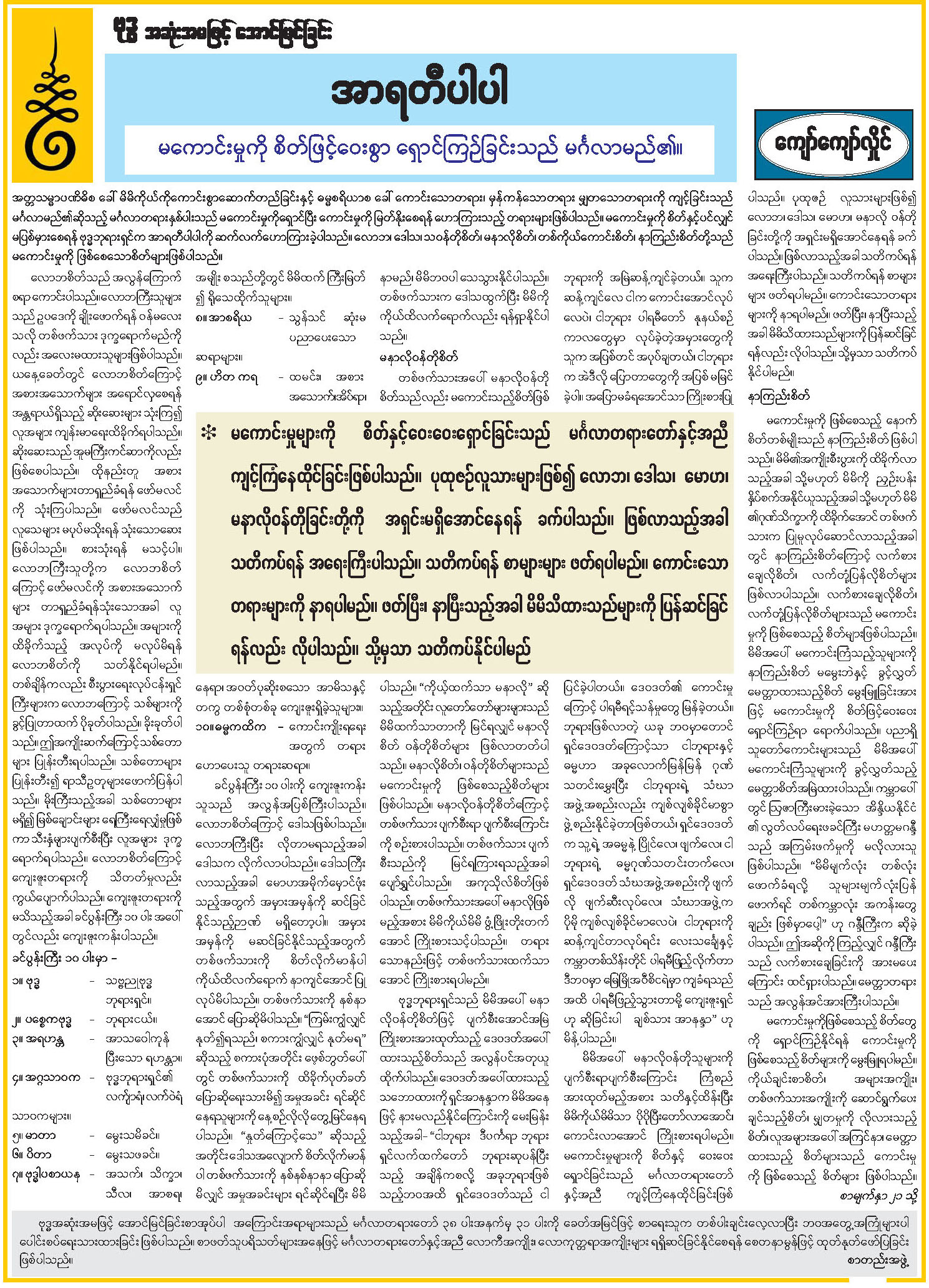 အာရတီပါပါ (မကောင်းမှုကို စိတ်ဖြင့်ဝေးစွာ ရှောင်ကြဉ်ခြင်းသည် မင်္ဂလာမည်၏)